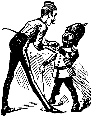 [Attires himself for the rôle of a Physician in a dressing-gown and an old yeomanry helmet.