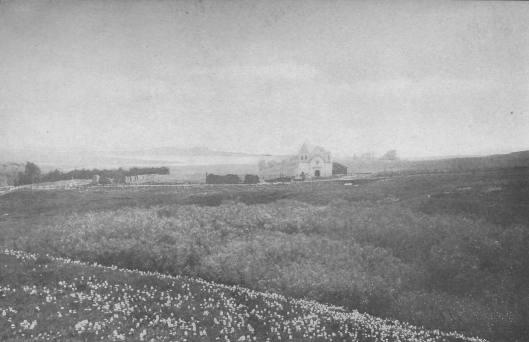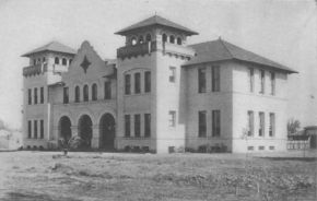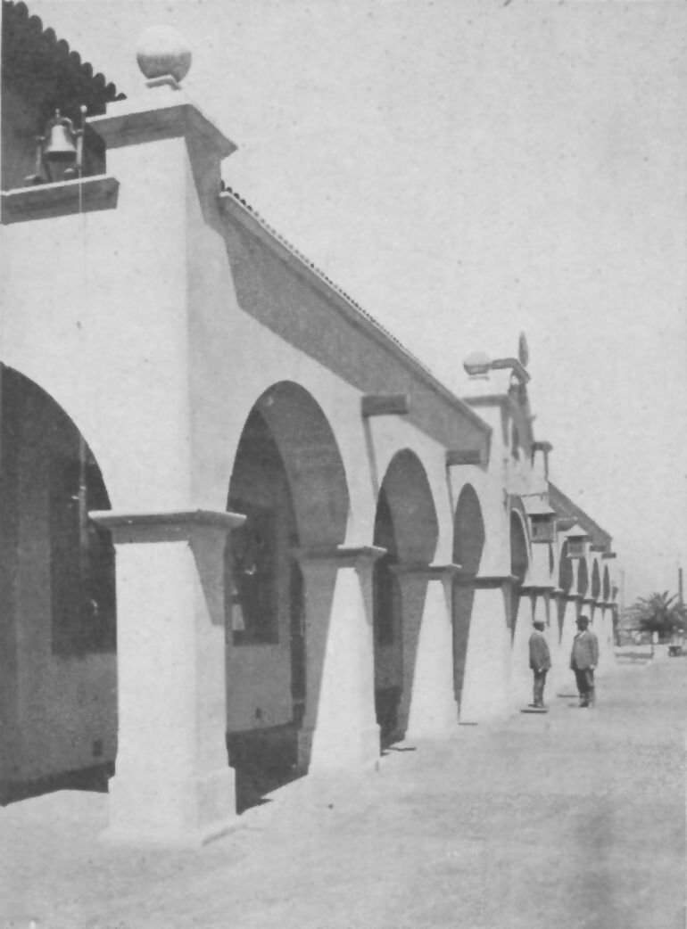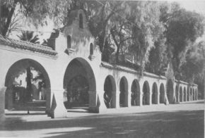 Showing monastery recently built behind the old Mission arches.