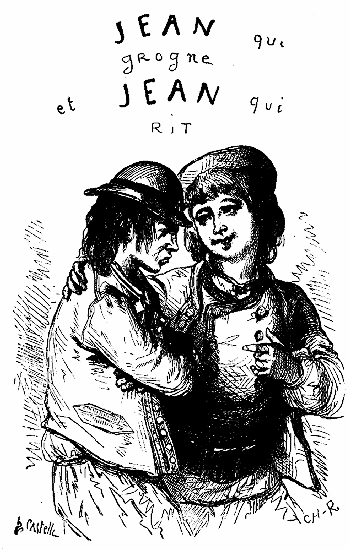 Chère petite, tu as longtemps attendu ton livre; c'est qu'il y avait bien des frères, des cousins, des cousines, d'un âge plus respectable que le tien. Mais enfin, voici ton tour. JEAN QUI RIT te fera rire, je l'espère; je ne crains pas que JEAN QUI GROGNE te fasse grogner.