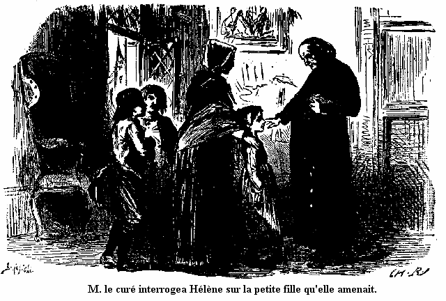 Jeannot ne répondit que par un soupir et une larme, Jean ne dit plus rien. Ils marchèrent en silence et ils arrivèrent à la porte d'Hélène; en l'ouvrant, Jeannot se sentit surmonté par une forte odeur de lapin et de galette.