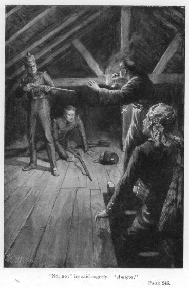 There was nothing to be done, as Pen Gray soon realised as he lay upon his side in the shade of the steep valley, watching his wounded comrade, who gradually sank into the sleep of exhaustion, while the private listened for every sound that might suggest the coming on or retreating of the French troops. His hopes rose once, for it seemed to him that the tide of war was ebbing and flowing lower down the valley, and his spirits rose as the mountain-breeze brought the sounds of firing apparently nearer and nearer, till he felt that the English troops had not only rallied, but were driving back the French over the ground by which they had come. But as the day wore on he found that his hopes were false; and, to make their position worse, fresh troops had come down the valley and were halted about a quarter of a mile from where he and his sleeping companion lay; while, lower down, the firing, which had grown fiercer and fiercer, gradually died out.