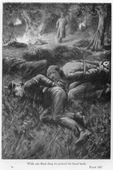 The sturdy-looking boy addressed had just closed up to his officer’s side when, as they were about to plunge into a low-growing patch of trees, there was another volley, the bullets pattering amongst the branches, twigs and leaves cut from above the men’s heads falling thickly.