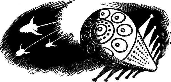 The stranger ship was moving slowly in relation to the T-247. Suddenly the motion changed, the stranger spun—and a giant lock appeared in her side, opened. The T-247 began to move, floated more and more rapidly straight for the lock. Her various weapons had stopped operating now, the hoppers of the Garnell guns exhausted, the charge of the accumulators aboard the ship down so low the proton guns had died out.