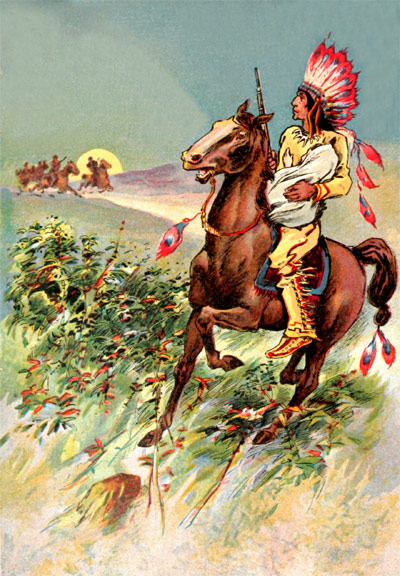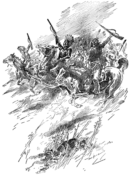 [11]The next moment the Sioux wheeled his horse, and heading westward, galloped off with such speed that he almost instantly vanished.