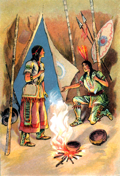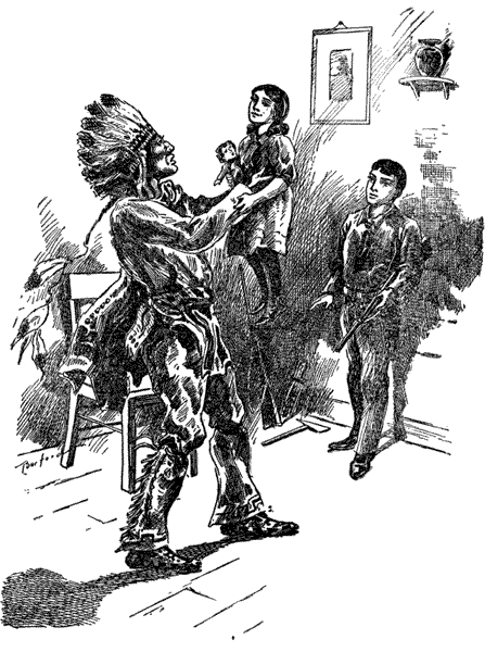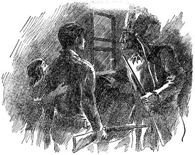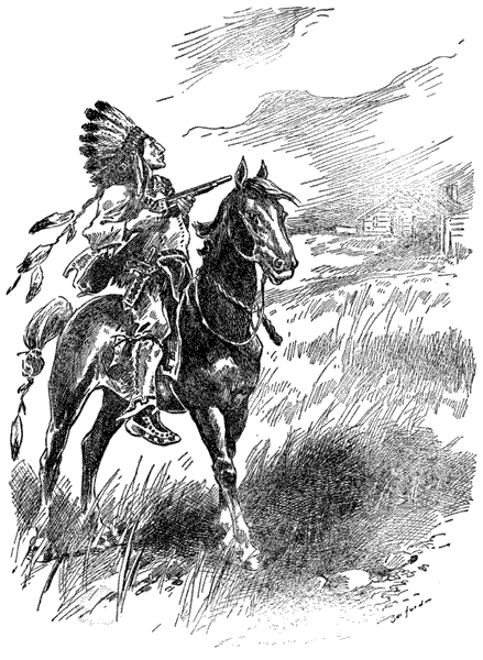 Now, there was nothing to cause special alarm in this sight, for it was a common thing to meet Indians in that part of the country, where indeed many of them may be seen to-day; but the lad suddenly remembered that when looking in the direction of his home he had failed to see any signs of life, and he was at once filled with a mis[8]giving which caused him to swallow a lump in his throat before answering the question—