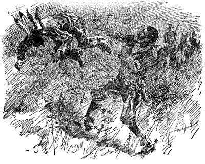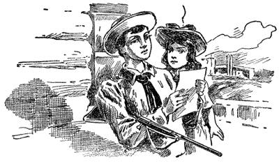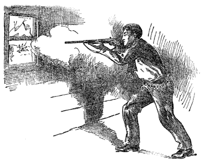 Melville's fine breech-loading rifle was slung over his shoulder, and held in place by a strap that passed in front. It could be quickly drawn from its position whenever needed. It was not of the repeating pattern, but the youth was so handy with the weapon that he could [4]put the cartridges in place, aim, and fire not only with great accuracy, but with marked rapidity.