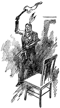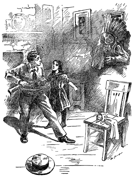 No need to tell the lad to watch, for his attention was fixed upon the warrior. Just as Dot spoke he made a signal which the intelligent youth could not comprehend. He flung one end of a blanket in the air slightly above and in front of him, and, holding the other part in his hand, waved it vigorously several times.