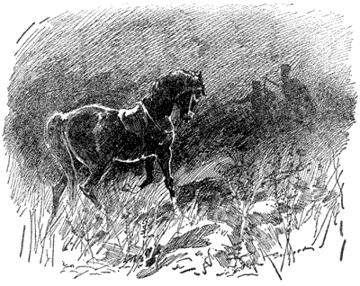 Melville hesitated for a minute on reaching the diverging point [6]of the paths. He was anxious to get home; but his wish to give his loved sister all the enjoyment possible in the ride led him to take the abandoned trail, and it proved a most unfortunate thing that he did so.