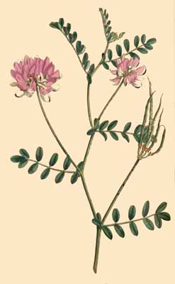 CORONILLA varia herbacea, leguminibus erectis teretibus torosis numerosis, foliolis plurimis glabris. Linn. Syst. Vegetab. ed. 14. Murr. p. 670. Ait. Kew. v. 3. p. 59.