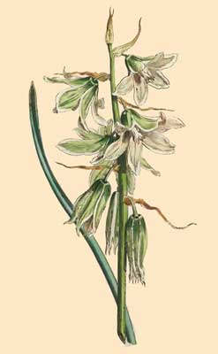 NECTARY situated below the Petals, perfectly white, somewhat ovate, the sides folding together, before the flower fully expands, nearly upright, embracing and containing within it the Pistillum and Stamen, on touching it ever so slightly with the point of a pin, while in this state, it suddenly springs back and quits the Pistillum, the lower elastic part of it is then bent in the form represented in a magnified view of the flower on the plate, fig. 4. this curious phœnomenon has not been noticed by Cavanille.
