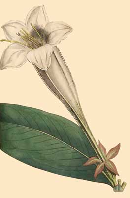 The seeds were sown by Mr. Fairbairn, in March, and the plants kept in the green-house till very late in the summer, when to accelerate their blowing, they were removed into the dry stove: it is worthy of remark, that these plants, even late in the autumn, shew no signs of blossoming, but the flowers at length come forth with almost unexampled rapidity, and the seed-vessels are formed as quickly, so that if the flowers were not very numerous, their blossoming period would be of very short duration; future experience may perhaps point out the means of making the plant blow earlier: in Spain, the blossoms appeared later than here, Mons. Cavanille observed them in the Royal Garden, in November and December, most probably in the open ground, as no mention is made of the plants having been preserved from the weather.
