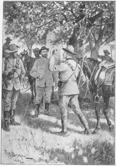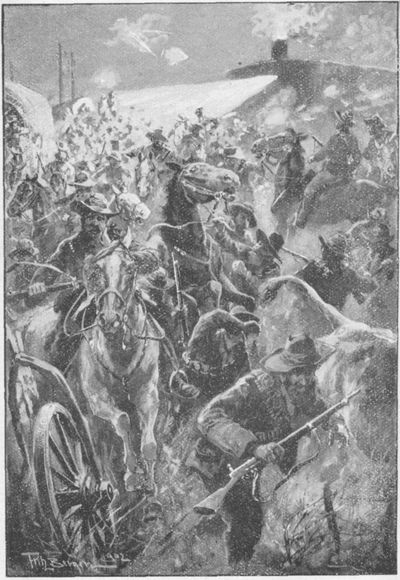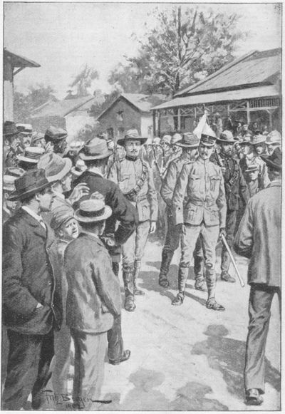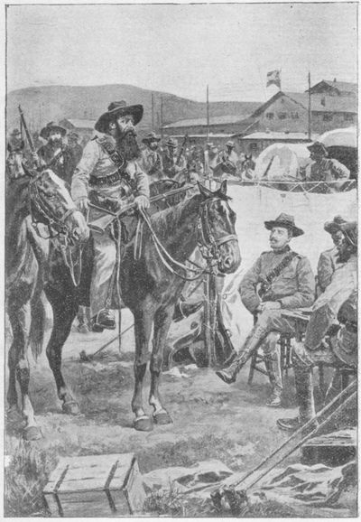 Previous to my departure next morning (p. 024) I made a hurried call at Commandant-General Joubert's offices. The ante-chamber leading to the Generalissimo's "sanctum-sanctorum" was crowded with brilliantly-uniformed officers of our State Artillery, and it was only by dint of using my elbows very vigorously that I gained admission to my chief-in-command.