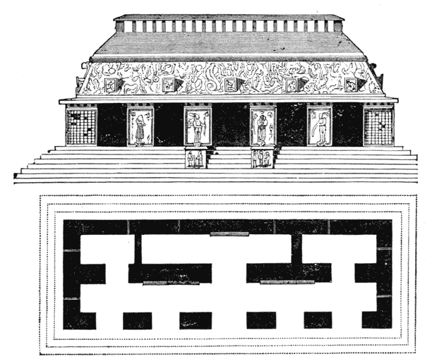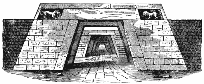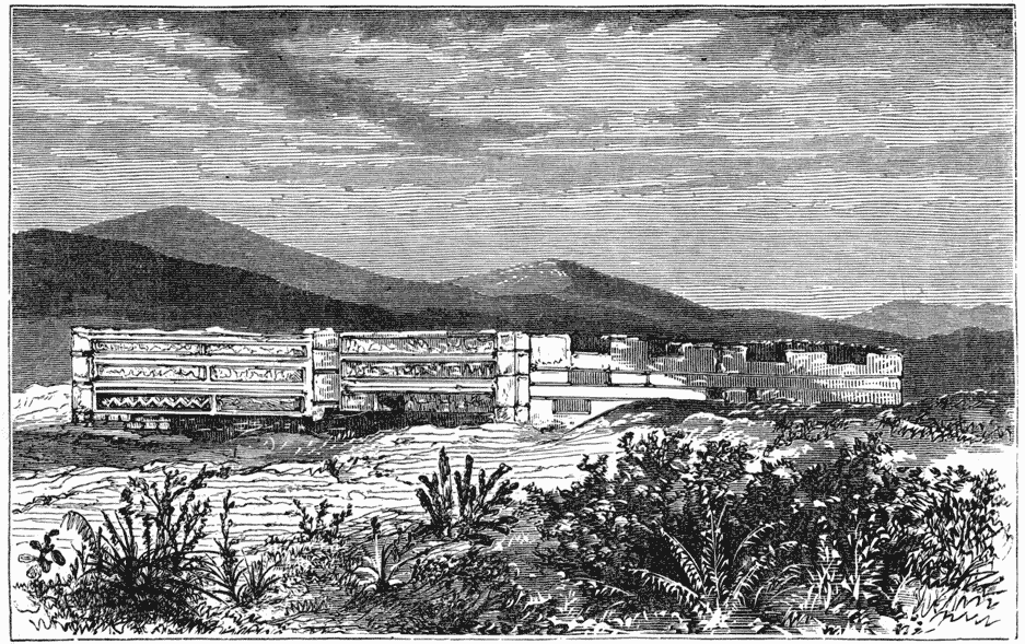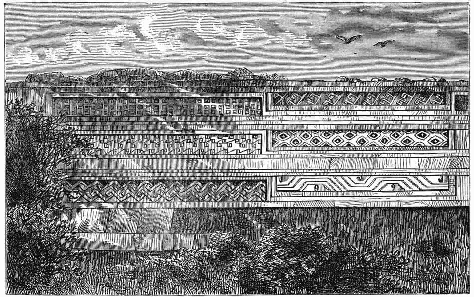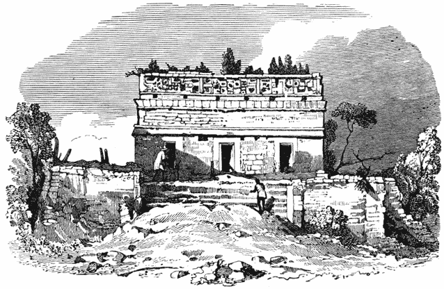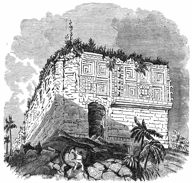 Engraving of corner of building with architectural sculpture Fig. 1.—Gateway at Labna. [See p. 144.