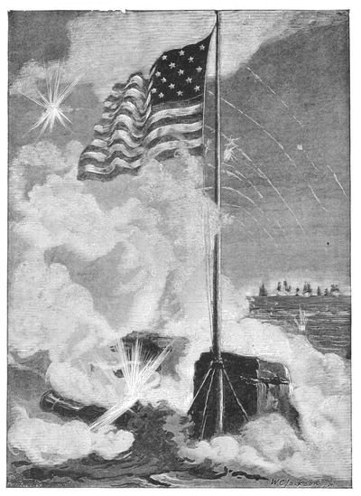 This noble sheet of water had been, since the very opening of the year 1813, under the control of the British, who had gathered there their most powerful vessels under the command of Admiral Cockburn, whose (p. 539) name gained an unenviable notoriety for the atrocities committed by his forces upon the defenceless inhabitants of the shores of Chesapeake Bay. Marauding expeditions were continually sent from the fleet to search the adjacent country for supplies. When this method of securing provisions failed, Cockburn hit upon the plan of bringing his fleet within range of a village, and then commanding the inhabitants to supply his needs, under penalty of the instant bombardment of the town in case of refusal. Sometimes this expedient failed, as when Commodore Beresford, who was blockading the Delaware, called upon the people of Dover to supply him at once with "twenty-five large bullocks and a proportionate quantity of vegetables and hay." But the sturdy inhabitants refused, mustered the militia, dragged some old cannon down to the water-side, and, for lack of cannon-balls of their own, valiantly fired back those thrown by the British, which fitted the American ordnance exactly.