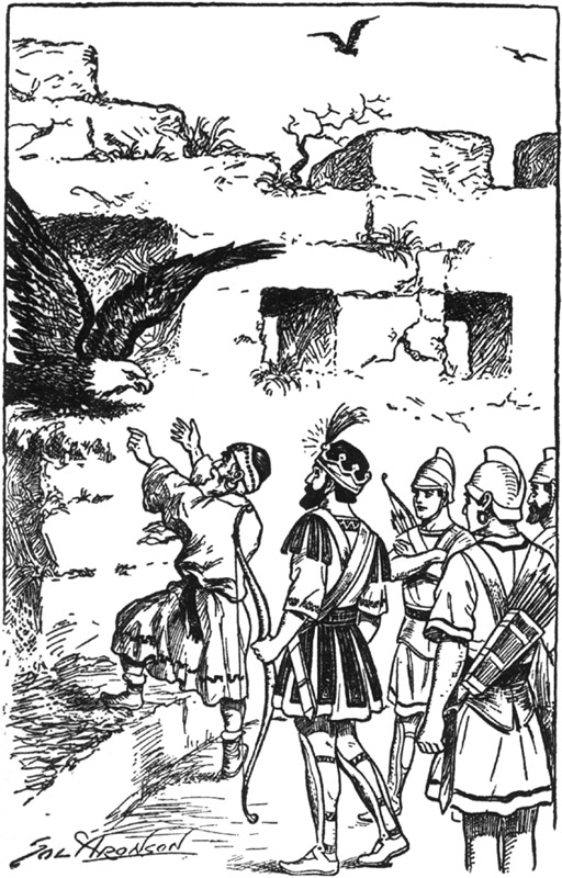 The four youths mounted the eagles which flew aloft to the extremity of their cords 202