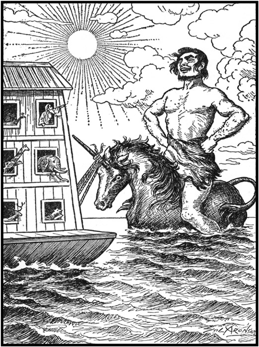 Og, riding gaily on the unicorn behind the Ark, was quite happy 26