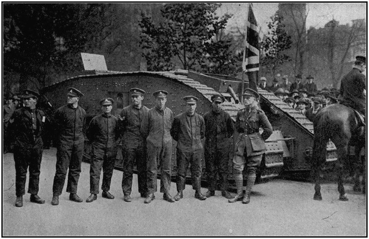 "Tanks!" some one cried. Some were facetious; others indifferent; a few mildly interested. But no one seemed very keen about it, especially as the tanks in those days had a reputation for rather heavy casualties. Only Talbot, remembering the derelict and the interest she had inspired, said, with a laugh,—