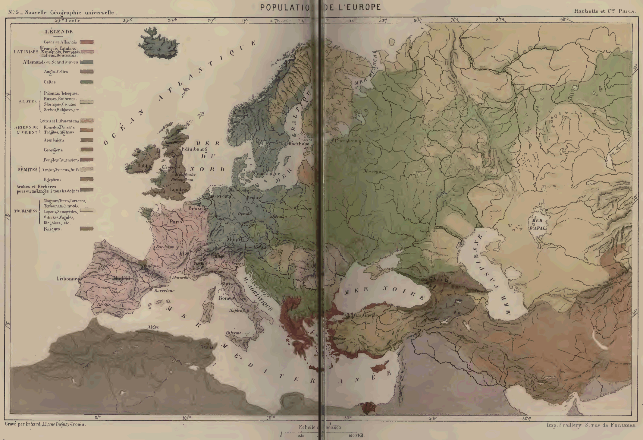 Si nous donnons la première place à l'Europe civilisée dans notre description de la Terre, ce n'est point en vertu de préjugés semblables à ceux des Chinois. Non, cette place lui revient de droit. D'abord, le continent européen est le seul dont toute la surface ait été parcourue et scientifiquement explorée, le seul dont la carte soit à peu près complète et dont l'inventaire matériel soit presque achevé. Sans avoir une population aussi dense que celle de l'Inde et de la Chine centrale, l'Europe contient près du quart des habitants du globe, et ses peuples, quels que soient leurs défauts et leurs vices, quel que soit, à maints égards, l'état de barbarie dans lequel ils se trouvent, sont encore ceux qui donnent l'impulsion au reste de l'humanité dans les travaux de l'industrie et ceux de la pensée. C'est en Europe que, depuis vingt-cinq siècles, le principal foyer de rayonnement pour les arts, les sciences, les idées nouvelles, n'a cessé de briller, tout en se déplaçant graduellement du sud-est au nord-ouest. Même les hardis colons européens qui sont allés porter leurs langues et leurs moeurs par delà les mers et qui ont eu l'immense avantage de trouver un sol vierge pour s'y épandre librement, n'ont point encore donné au nouveau monde, dans le développement de l'histoire contemporaine, une importance égale à celle de la petite Europe.