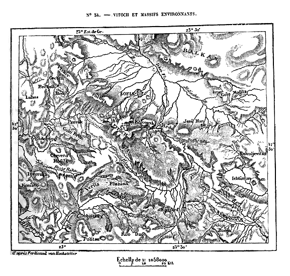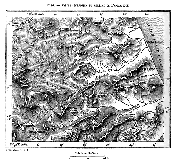 En s'étalant ainsi, le système des Alpes perd son caractère et son aspect; il n'a plus ni grands massifs, ni glaciers, ni champs de neige; au nord, il s'affaisse peu à peu vers la vallée du Danube; au sud, il se ramifie en chaînes secondaires sur le piédestal que lui fournit le plateau bombé de la Turquie. Malgré la différence extrême qu'offrent le tableau des grandes15 Alpes et les vues du Montenegro, de l'Hémus, du Rhodope, du Pinde, toutes ces arêtes montagneuses n'en appartiennent pas moins au même système orographique. Toute la péninsule thraco-hellénique doit être considérée comme une dépendance naturelle des Alpes. Il en est de même de la presqu'île d'Italie, car, dans son immense courbe, l'arête des Apennins continue parfaitement la chaîne des Alpes Maritimes, et l'on ne sait vraiment où l'on doit tracer entre les deux la ligne conventionnelle de séparation. Enfin, parmi les chaînes de montagnes qui se rattachent au système des Alpes, il faut aussi compter les Carpathes, que le travail des eaux a graduellement isolées pendant la période géologique moderne. Il est indubitable qu'autrefois l'hémicycle de montagnes formé par les Petits Carpathes, les Beskides, le Tatra, les Grands Carpathes et les Alpes transylvaines s'unissait d'un côté aux Alpes d'Autriche, de l'autre aux contre-forts des Balkhans. Le Danube s'est ouvert deux portes à travers ces remparts; mais ces portes sont étroites, semées de roches, dominées par de hautes parois.