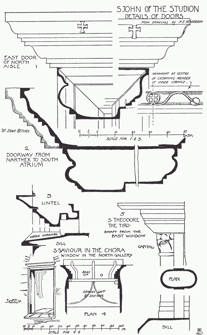 Numerous references to the church of S. Sophia occur in the course of this volume, but the reader will not find that great monument of Byzantine architectural genius dealt with in the studies here offered. The obstacles in the way of a proper treatment of that subject proved insuperable, while the writings of Salzenberg, Lethaby, and Swainson, and especially the splendid and exhaustive monograph of my friend Mr. E. M. Antoniadi, seemed to make any attempt of mine in the same direction superfluous if not presumptuous. The omission will, however, secure one advantage: the churches actually studied will not be overshadowed by the grandeur of the 'Great Church,' but will stand clear before the view in all the light that beats upon them.