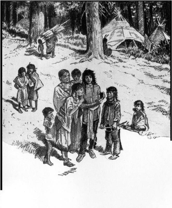 Somebody else was there, but not in bodily condition to have made much of a race after One-eye. It was a well-grown boy of about fifteen years, and One-eye at once recognized him as his own particular master, but he was a very forlorn-looking boy. He wore no clothing, except the deer-skin "clout" that covered him from above his hips to the middle of his [Pg 11]thighs. He carried a light lance in one hand and a bow in the other, and there were arrows in the quiver slung over his shoulder. A good butcher-knife hung in its case by the thong around his waist, and he was evidently out on a hunting expedition. He was the one being, except One-eye, remaining in that band of Nez Percés, with life and energy enough to try and do something. He did not look as if he could do much. He was the son of the old chief in command of the band, but it was two whole days since he had eaten anything, and he had a faded, worn, drawn, hungry appearance, until you came to his black, brilliant eyes. These had an unusual fire in them, and glanced quickly, restlessly, piercingly in all directions. He might have been even good-looking if he had been well fed and well dressed, and he was tall and strongly built. Just such Indian boys grow up into the chiefs and leaders who make themselves famous, and get their exploits into the newspapers, but as yet this particular boy had not managed to earn for himself any name at all. Every Indian has to do something notable or have something memorable occur to him before his tribe gives him the honor of a distinguishing name. One-eye knew him, and knew that he was hungry and in trouble, but had no name for him except that he suggested a danger of the camp-kettle.