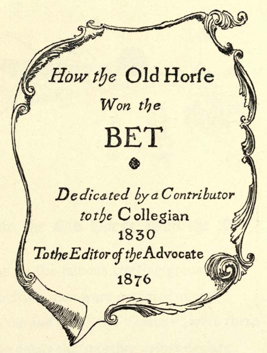 Unquestionably there is something a little like extravagance in “How the Old Horse won the Bet,” which taxes the credulity of experienced horsemen. Still there have been a good many surprises in the history of the turf and the trotting course.