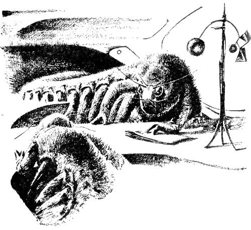 He looked at the page which showed the three bathygraphs that had been taken of the new animals from a distance. There was something odd about them, and Dodeth couldn't, for the hide of him, figure out what it was. It aroused an odd fear in him, and made him want to burrow deeper into the ground.