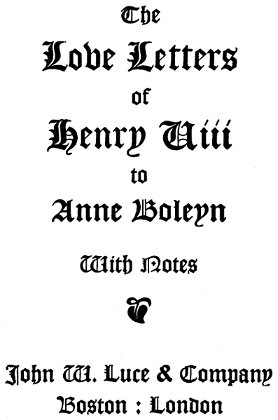 The Project Gutenberg EBook of The Love Letters of Henry VIII to Anne