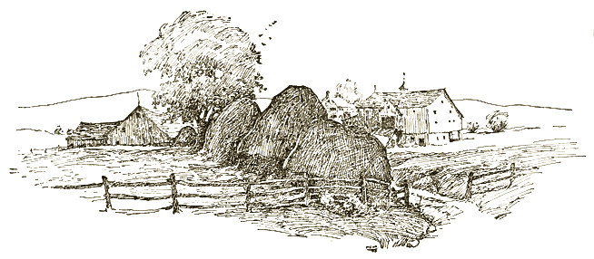 From whatever angle you look upon the Settlement, the first and strongest impression is of quiet order, harmony, and a kind of austere plenty. Nowhere is the purity of the spring so apparent. Nothing is out of place; nowhere is any confusion, or appearance of loose ends, or neglected tasks. As you come nearer, you feel the more surely that here there has never been undue haste nor waste; no shirking, no putting off till the morrow what should have been done to-day. Whenever a shingle or a clapboard was needed it was put on, where paint was required it was used,—that is evident; and a look at the great barns stored with hay shows how the fields have been conscientiously educated into giving a full crop.