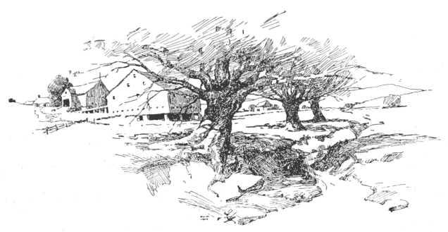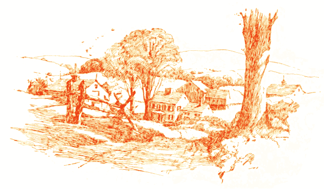 After you pass Albion village, with its streets shaded by elms and maples and its outskirts embowered in blossoming orchards, you wind along a hilly country road that runs between grassy fields. Here the whiteweed is already budding, and there are pleasant pastures dotted with rocks and fringed with spruce and fir; stretches of woodland, too, where the road is lined with giant pines and you lift your face gratefully to catch the cool balsam breath of the forest. Coming from out this splendid shade, this silence too deep to be disturbed by light breezes or vagrant winds, you find yourself on the brow of a descending hill. The first thing that strikes the eye is a lake that might be a great blue sapphire dropped into the verdant hollow where it lies. When the eye reluctantly leaves the lake on the left, it turns to rest upon the little Shaker Settlement on the right—a dozen or so large comfortable white barns, sheds, and houses, standing in the wide orderly spaces of their own spreading acres of farm and timber land. There again the spring goeth all in white, for there is no spot to fleck the dazzling quality of Shaker paint, and their apple, plum, and pear trees are so well cared for that the snowy blossoms are fairly hiding the branches.