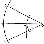 DIAMETER (from the Gr. διά, through, μέτρον, measure), in geometry, a line passing through the centre of a circle or conic section and terminated by the curve; the “principal diameters” of the ellipse and hyperbola coincide with the “axes” and are at right angles; “conjugate diameters” are such that each bisects chords parallel to the other. The diameter of a quadric surface is a line at the extremities of which the tangent planes are parallel. Newton defined the diameter of a curve of any order as the locus of the centres of the mean distances of the points of intersection of a system of parallel chords with the curve; this locus may be shown to be a straight line. The word is also used as a unit of linear measurement of the magnifying power of a lens or microscope.