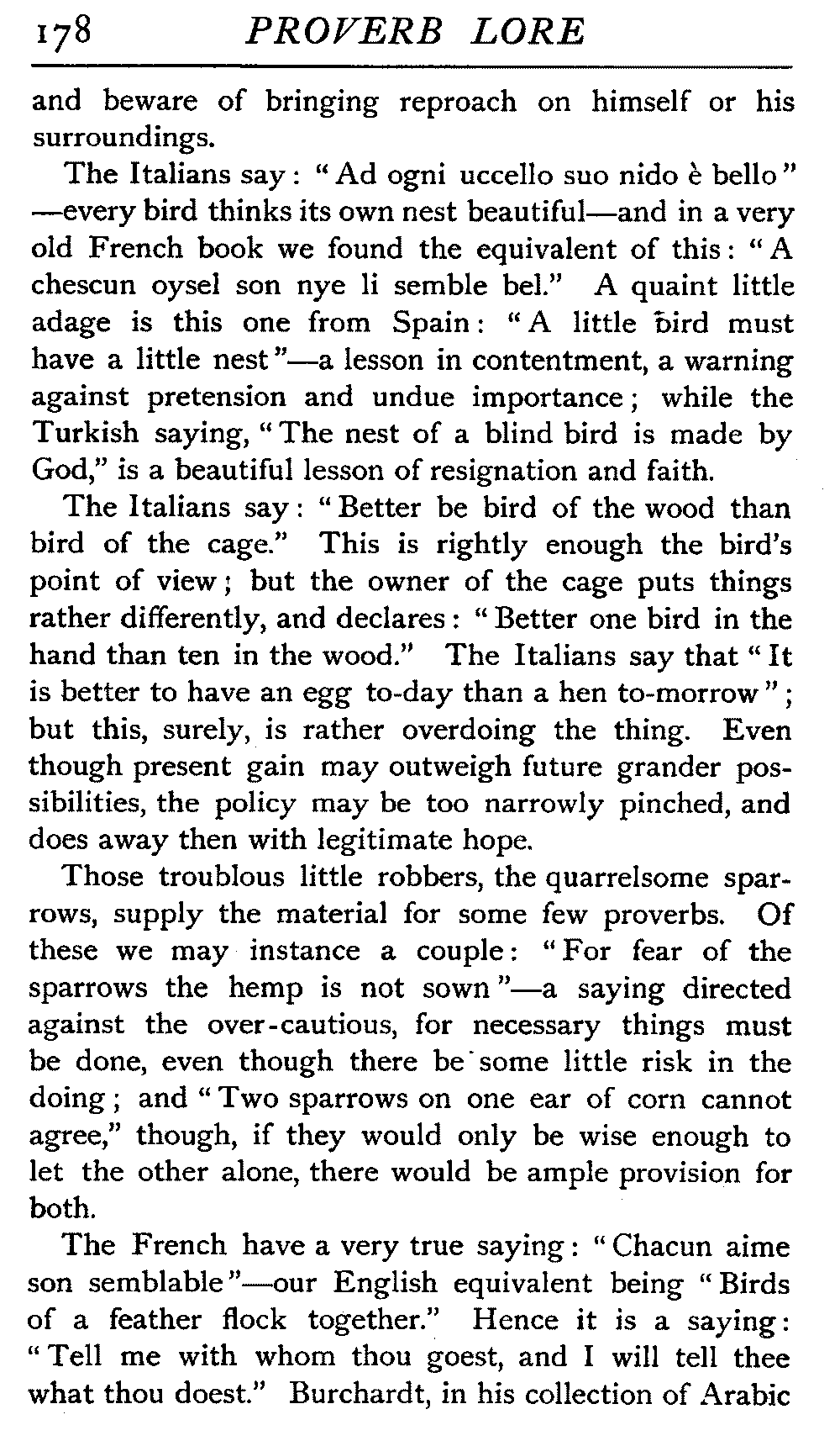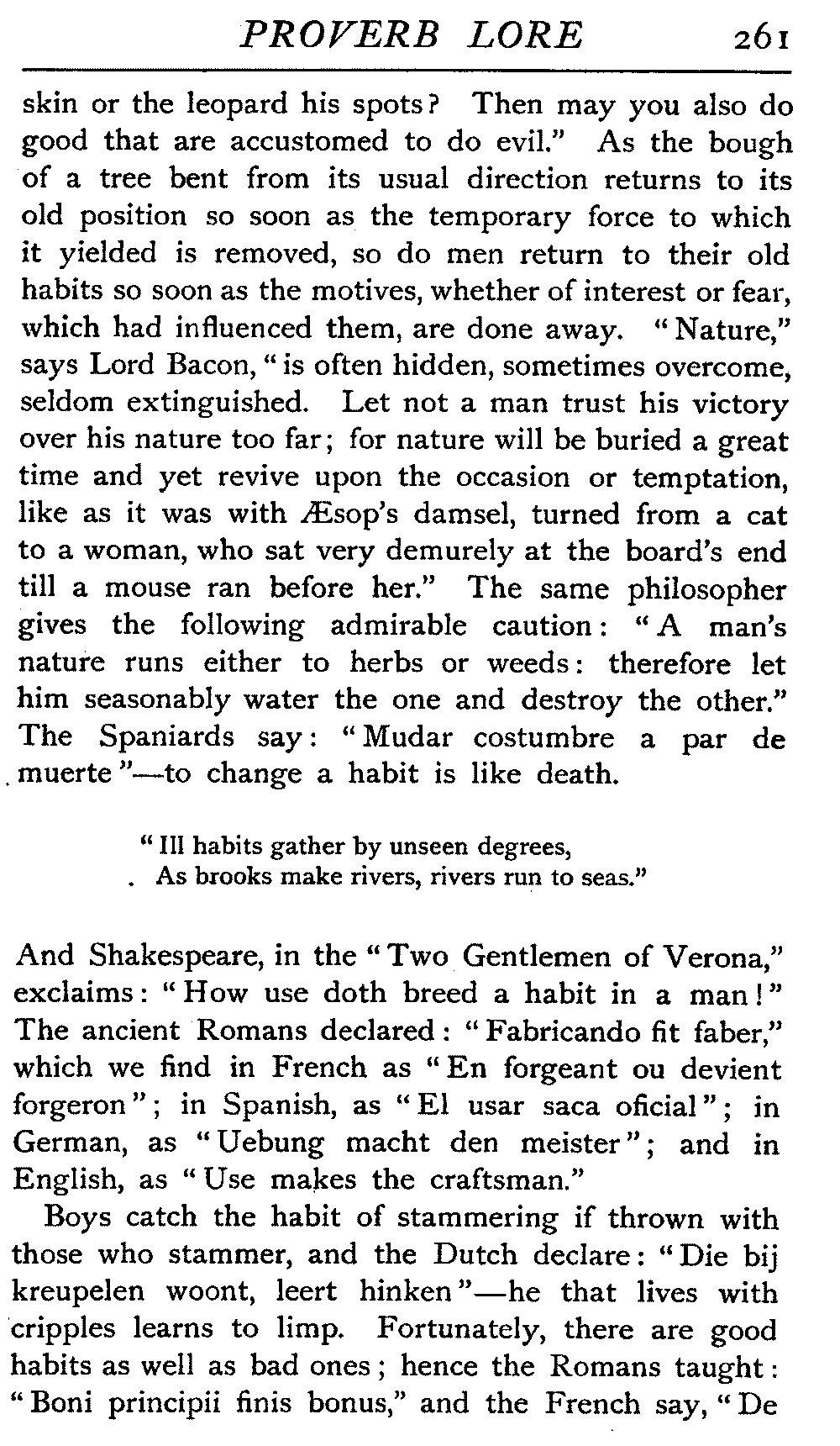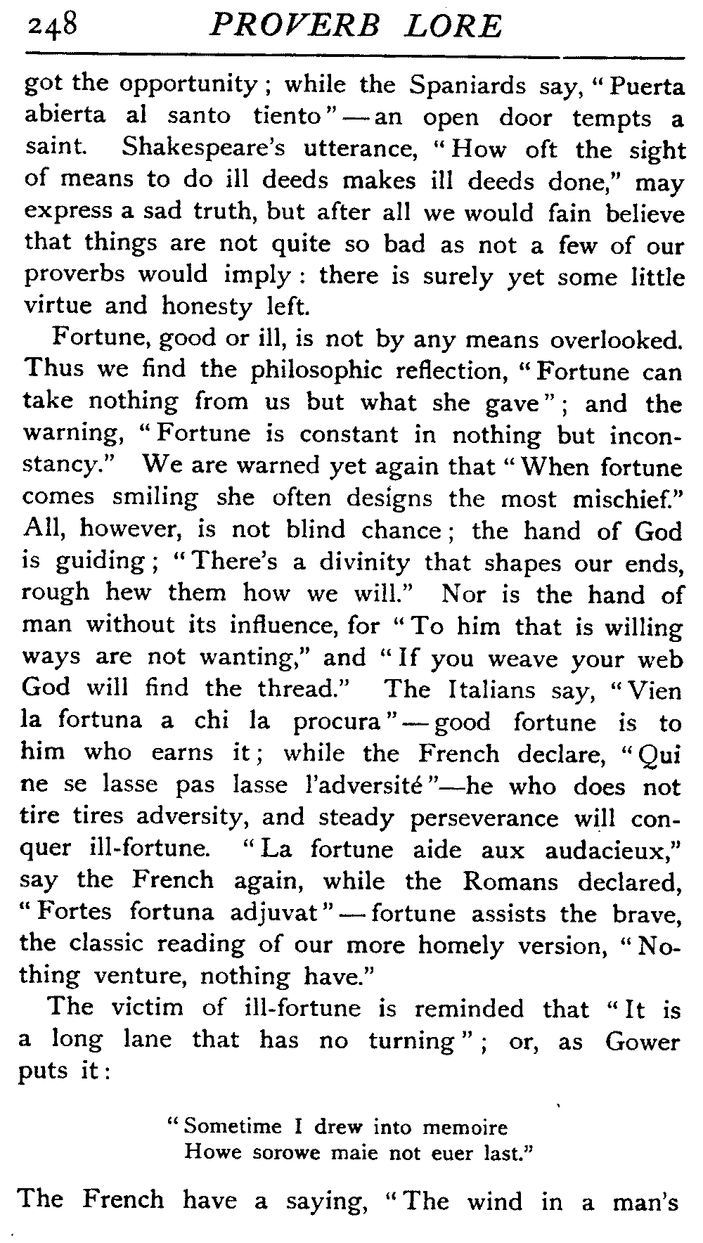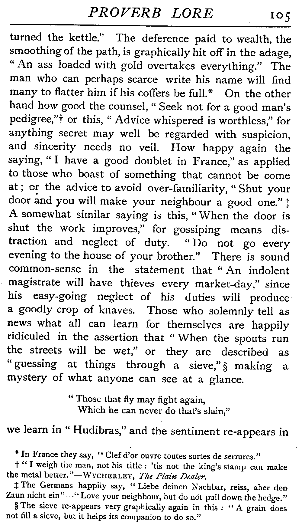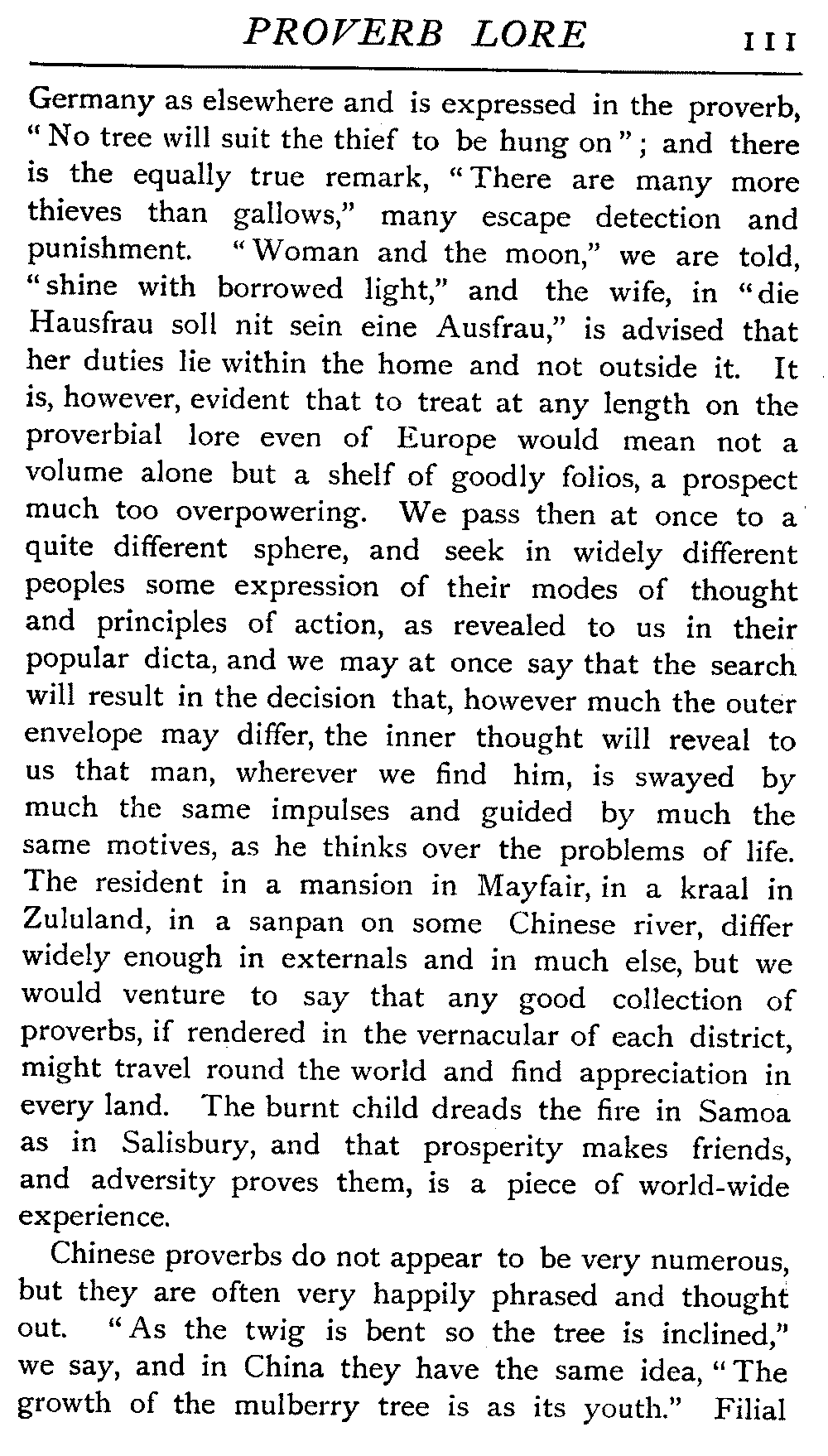 | National Idiosyncrasies—The Seven Sages of Greece—Know Thyself—The Laconic "If"—Ancient Greek Proverbs—Roman Proverbs—The Proverbs of Scotland: Strong Vein of Humour in them—Spanish and Italian Proverbs—The Proverbs of France—The "Comédie des Proverbes"—The Proverbs of Spain: their Popularity and Abundance; Historic Interest: their Bibliography—Italian Proverbs: their Characteristics—The Proverbs of Germany—Chinese Adages: their Excellence—Japanese Proverbs: their Poetry and Beauty—Arab Sayings: their Servility: their Humour—Eastern Delight in Stories—African Sayings: their pithy Wisdom—The Proverb-philosophy of the Talmud | 90 |