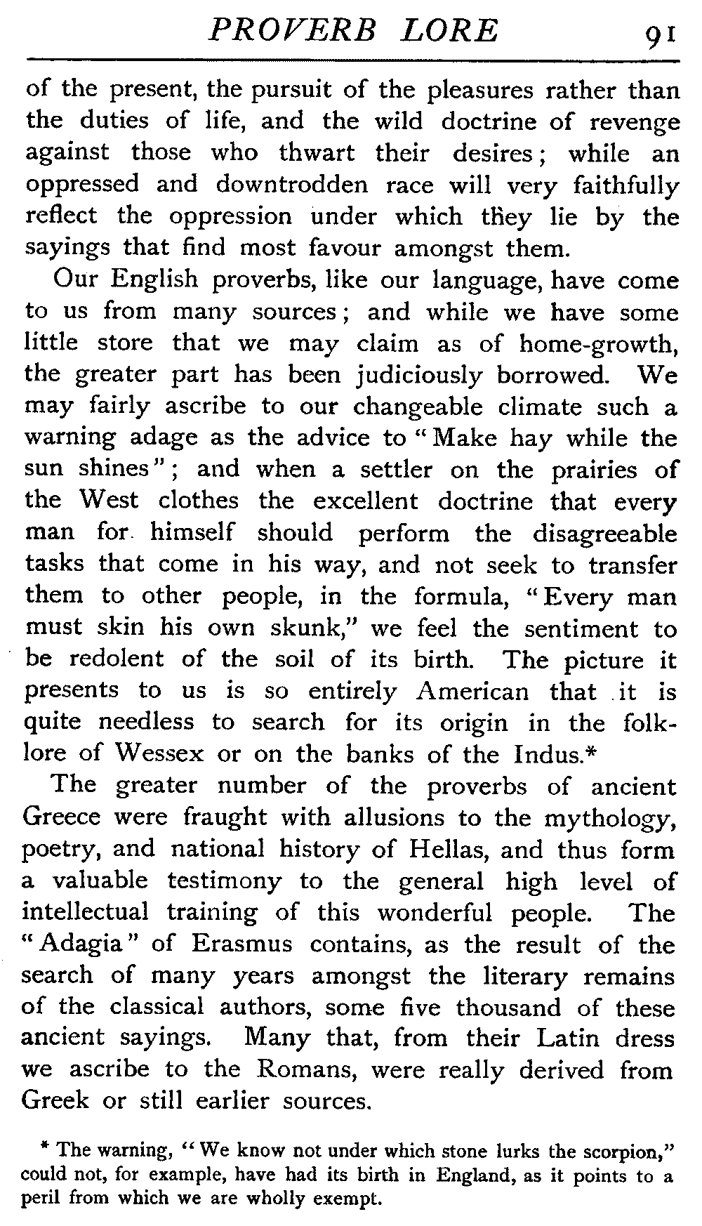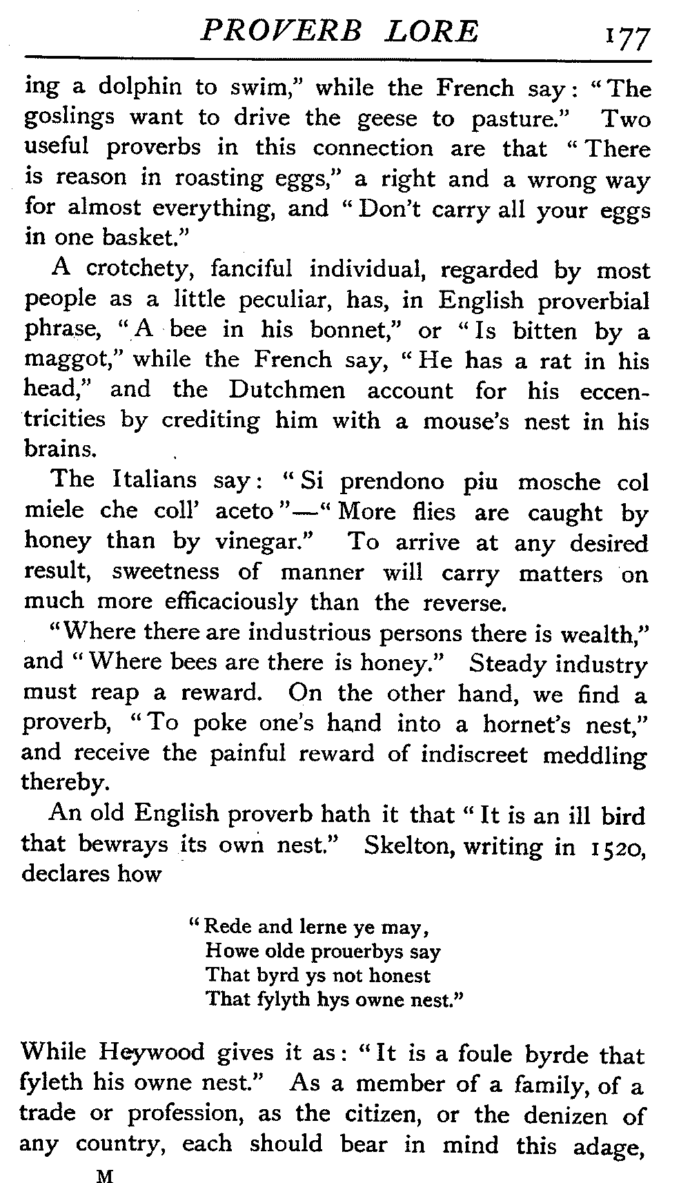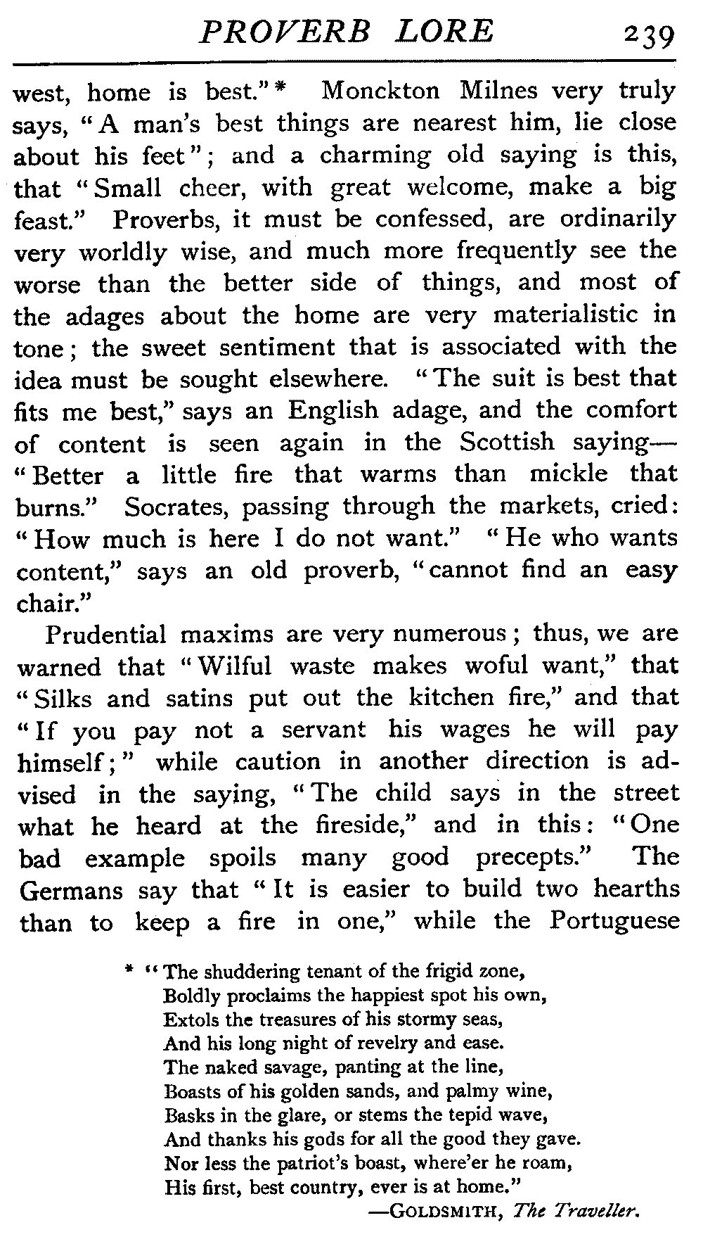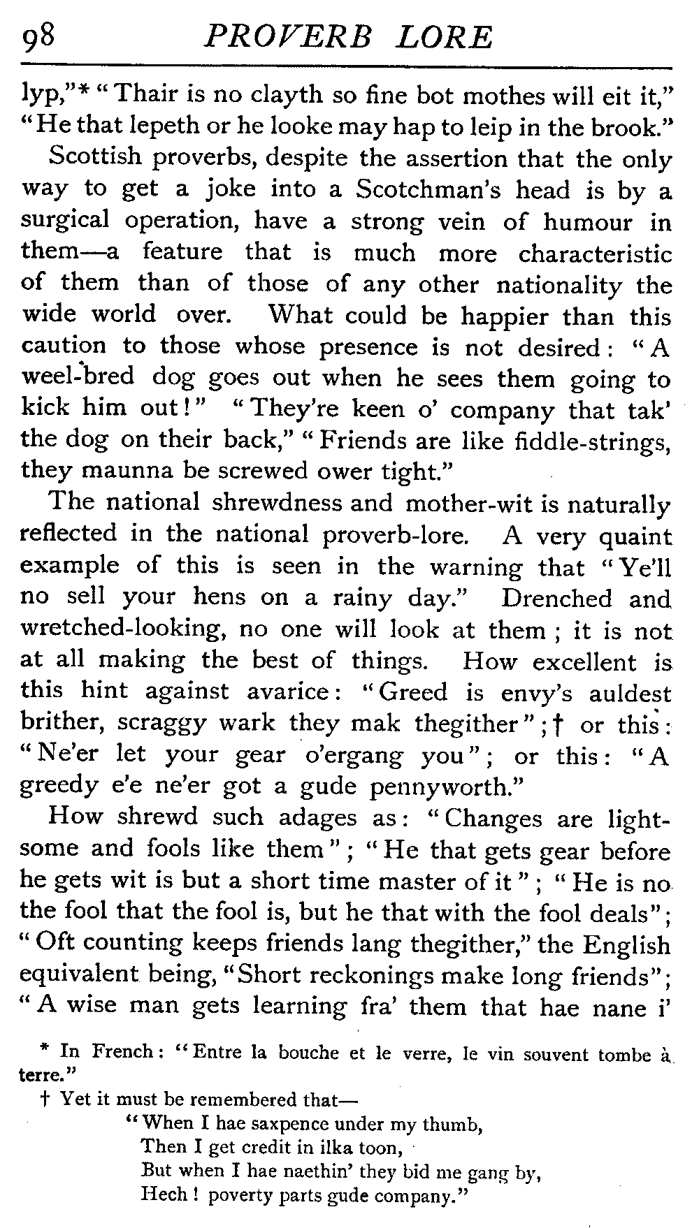 | National Idiosyncrasies—The Seven Sages of Greece—Know Thyself—The Laconic "If"—Ancient Greek Proverbs—Roman Proverbs—The Proverbs of Scotland: Strong Vein of Humour in them—Spanish and Italian Proverbs—The Proverbs of France—The "Comédie des Proverbes"—The Proverbs of Spain: their Popularity and Abundance; Historic Interest: their Bibliography—Italian Proverbs: their Characteristics—The Proverbs of Germany—Chinese Adages: their Excellence—Japanese Proverbs: their Poetry and Beauty—Arab Sayings: their Servility: their Humour—Eastern Delight in Stories—African Sayings: their pithy Wisdom—The Proverb-philosophy of the Talmud | 90 |
