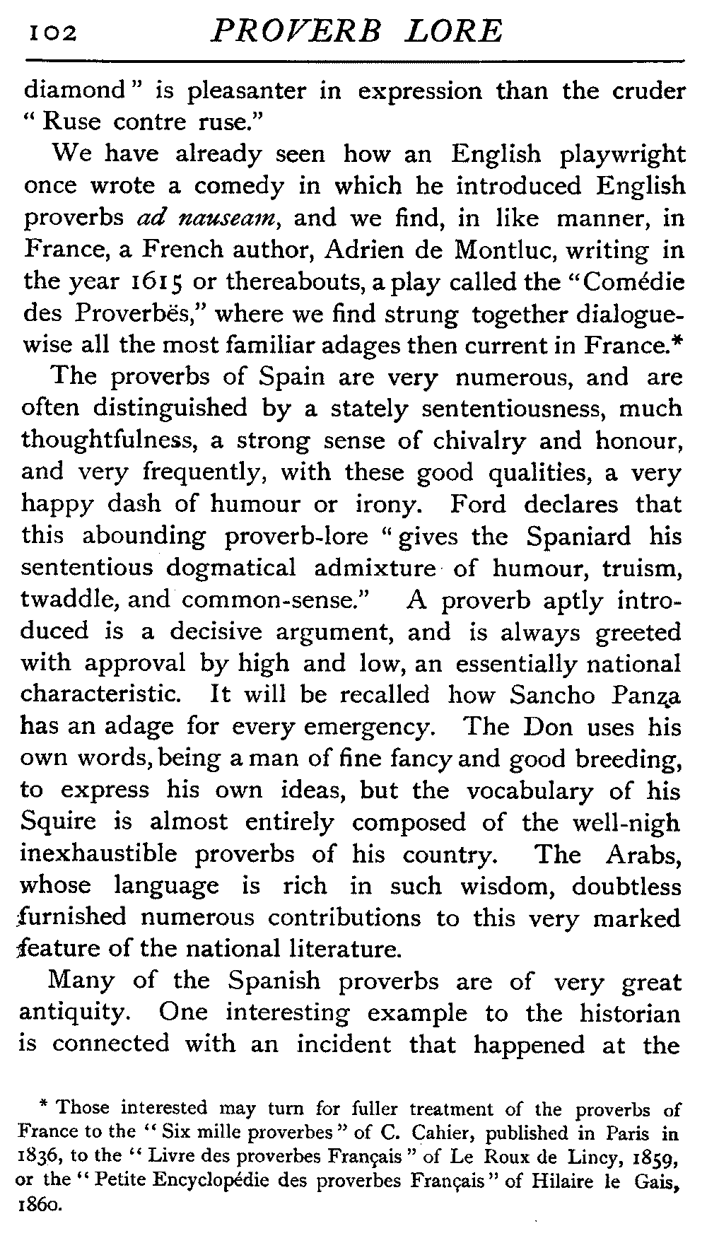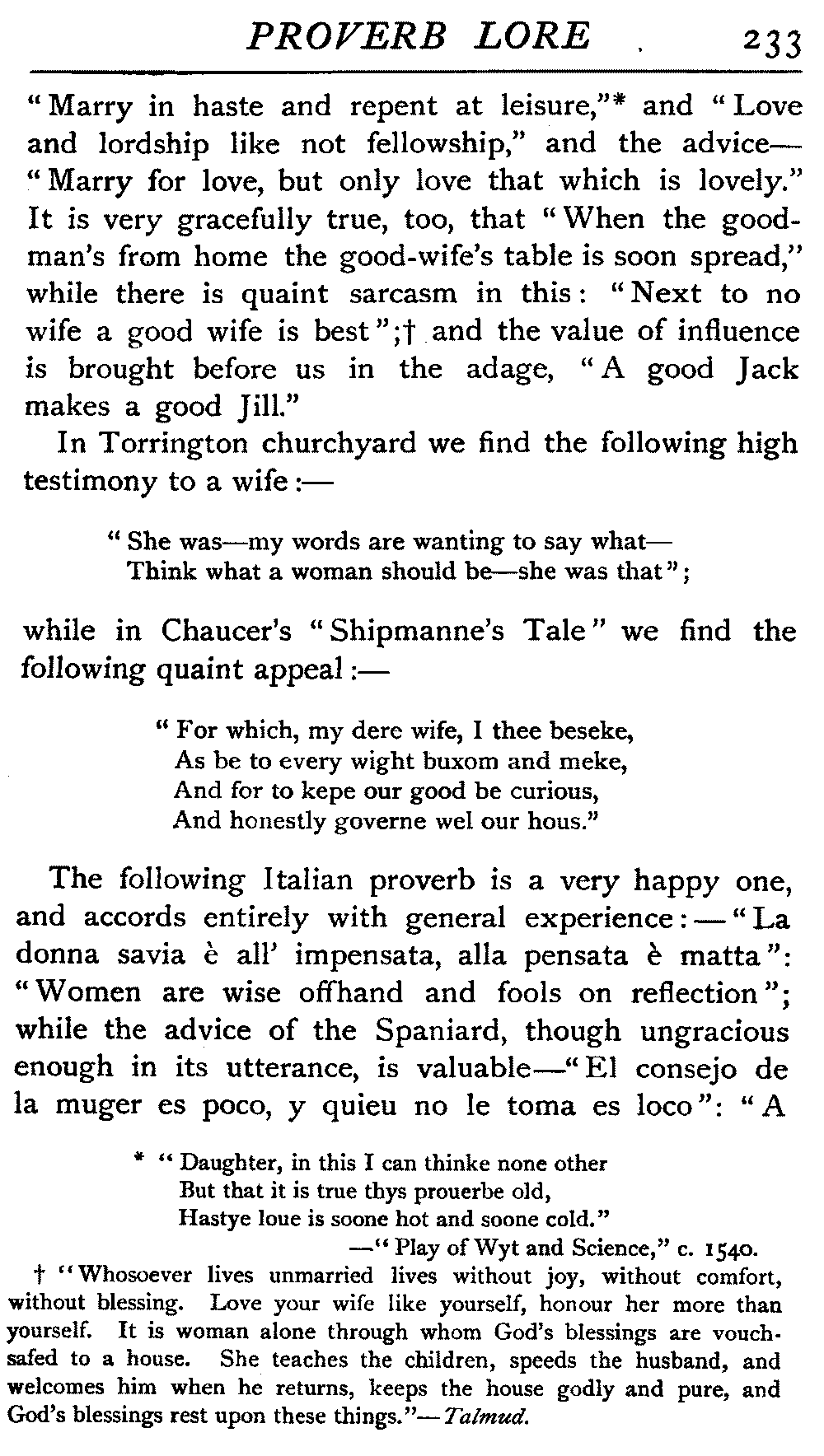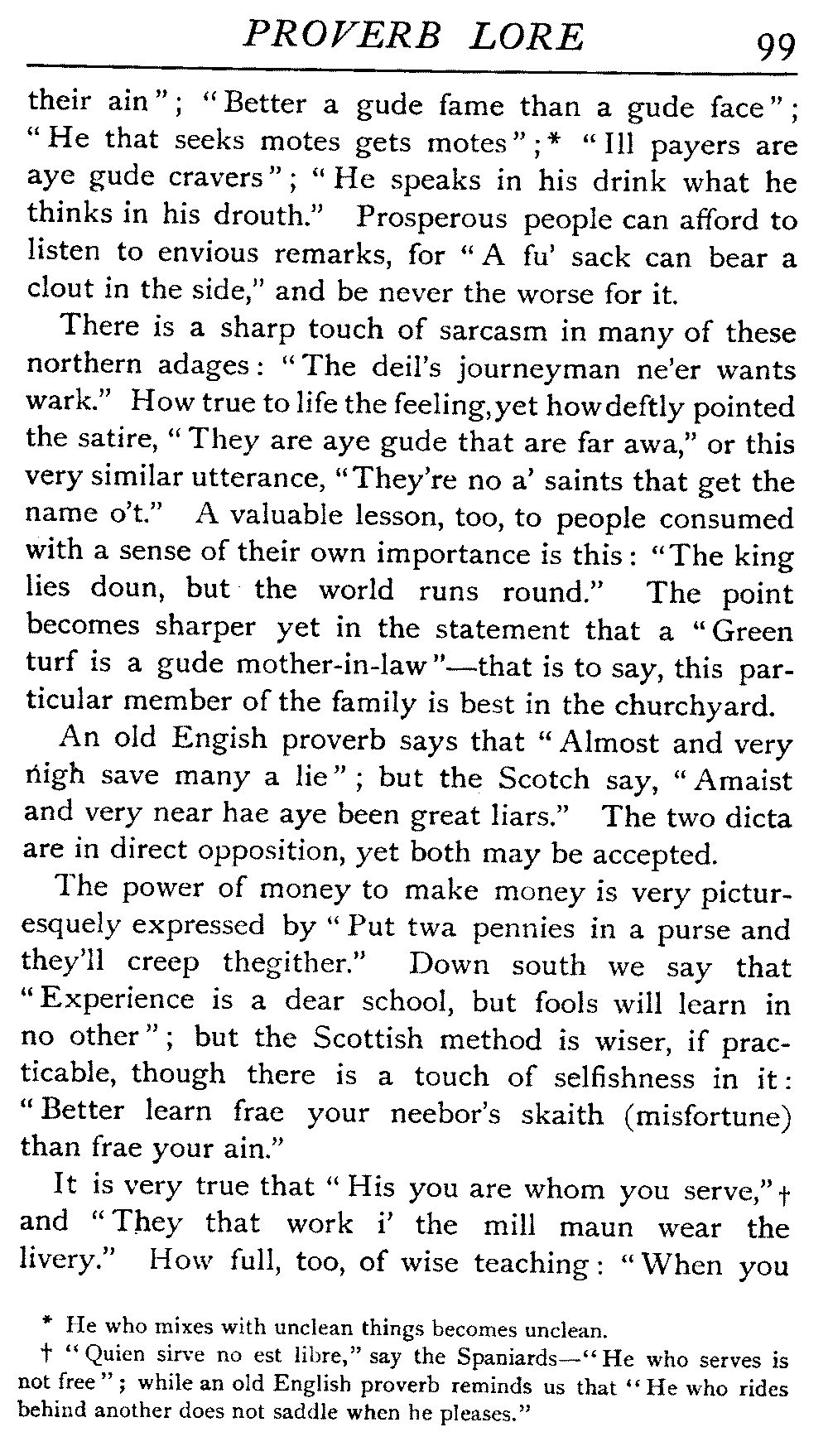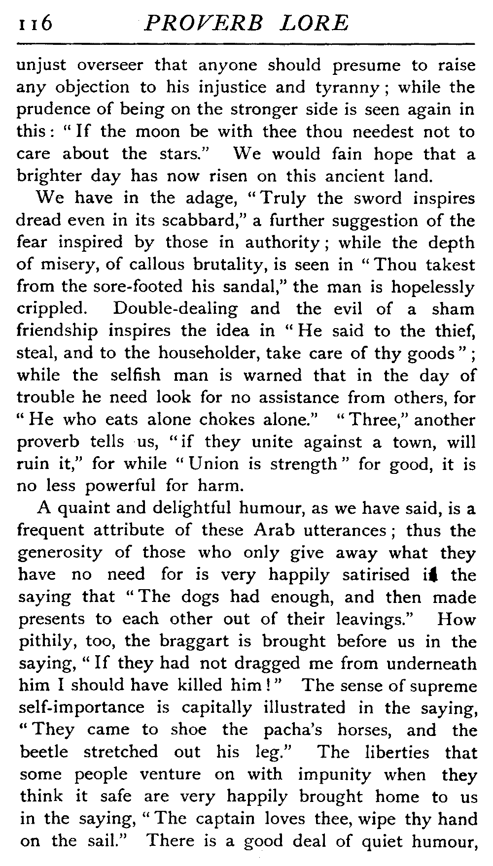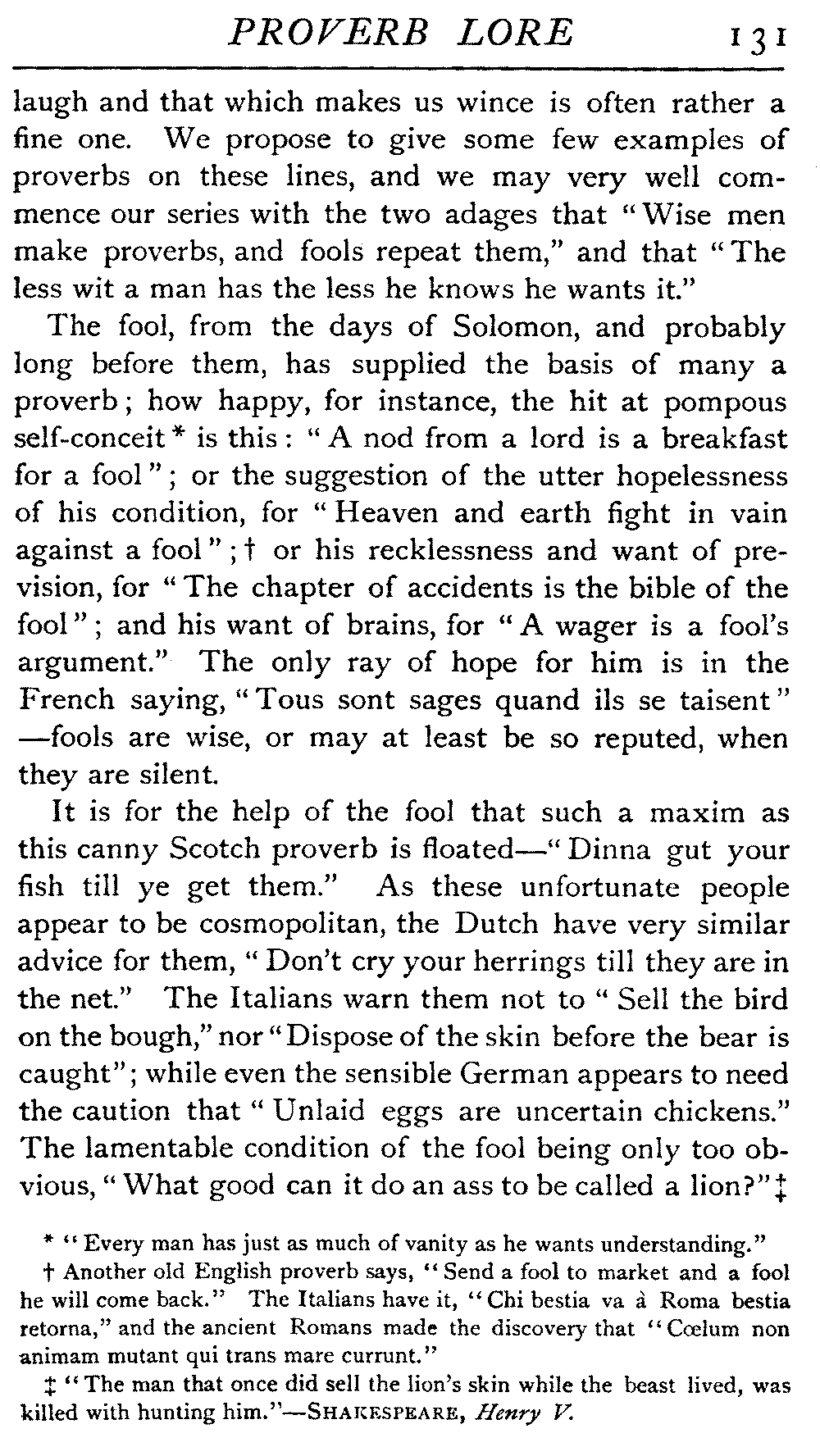 | National Idiosyncrasies—The Seven Sages of Greece—Know Thyself—The Laconic "If"—Ancient Greek Proverbs—Roman Proverbs—The Proverbs of Scotland: Strong Vein of Humour in them—Spanish and Italian Proverbs—The Proverbs of France—The "Comédie des Proverbes"—The Proverbs of Spain: their Popularity and Abundance; Historic Interest: their Bibliography—Italian Proverbs: their Characteristics—The Proverbs of Germany—Chinese Adages: their Excellence—Japanese Proverbs: their Poetry and Beauty—Arab Sayings: their Servility: their Humour—Eastern Delight in Stories—African Sayings: their pithy Wisdom—The Proverb-philosophy of the Talmud | 90 |