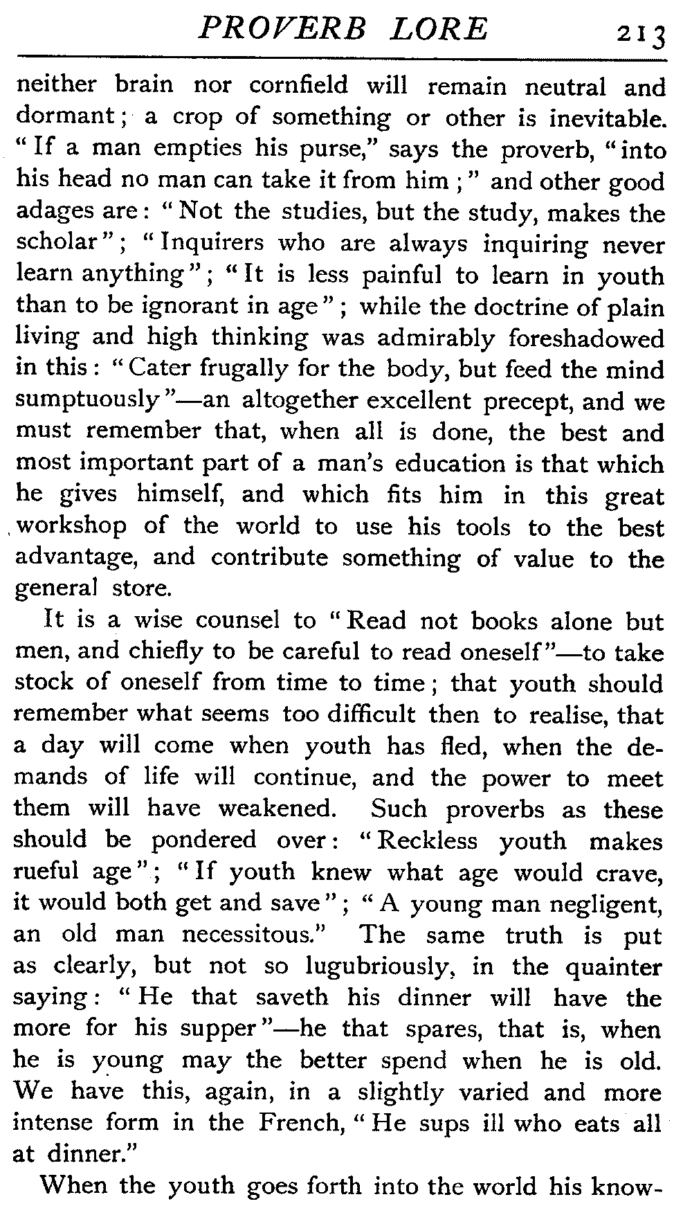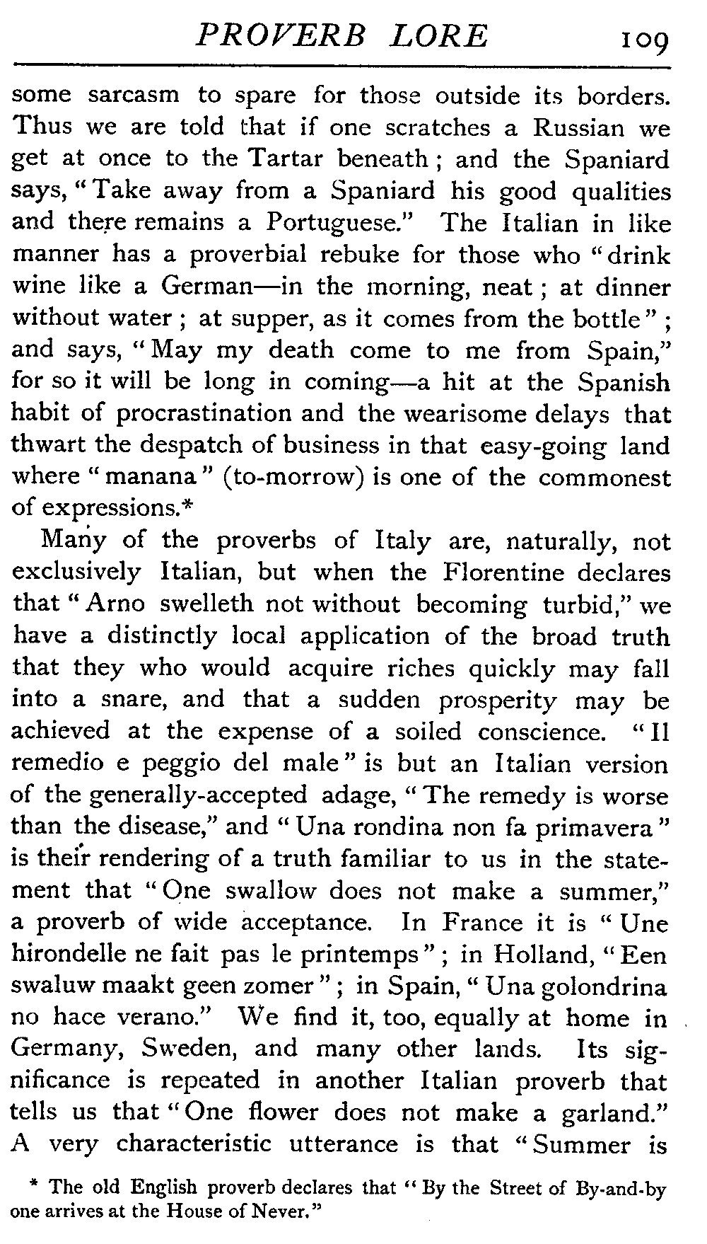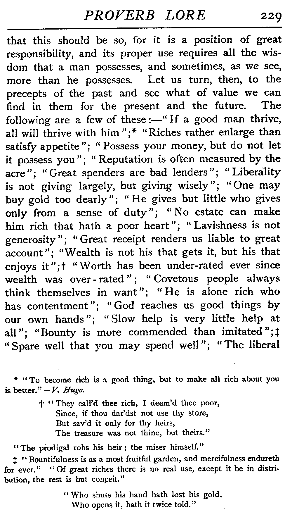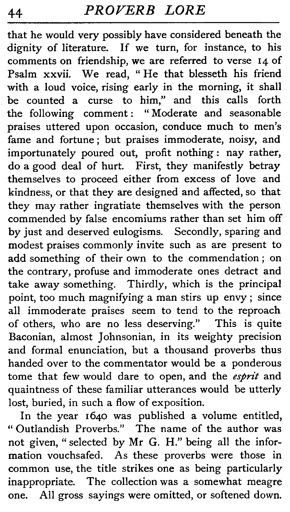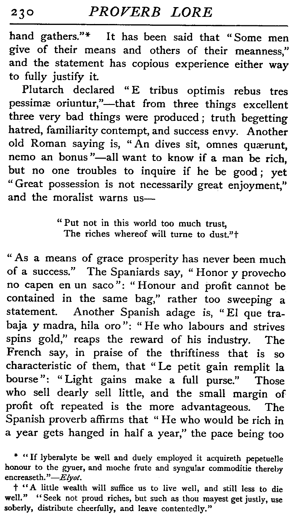 | National Idiosyncrasies—The Seven Sages of Greece—Know Thyself—The Laconic "If"—Ancient Greek Proverbs—Roman Proverbs—The Proverbs of Scotland: Strong Vein of Humour in them—Spanish and Italian Proverbs—The Proverbs of France—The "Comédie des Proverbes"—The Proverbs of Spain: their Popularity and Abundance; Historic Interest: their Bibliography—Italian Proverbs: their Characteristics—The Proverbs of Germany—Chinese Adages: their Excellence—Japanese Proverbs: their Poetry and Beauty—Arab Sayings: their Servility: their Humour—Eastern Delight in Stories—African Sayings: their pithy Wisdom—The Proverb-philosophy of the Talmud | 90 |