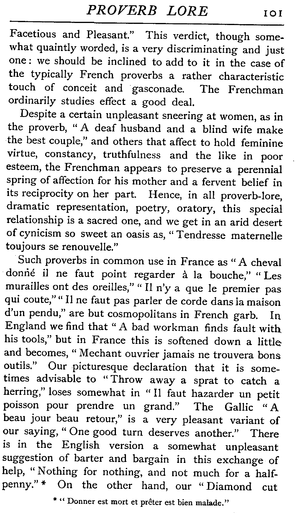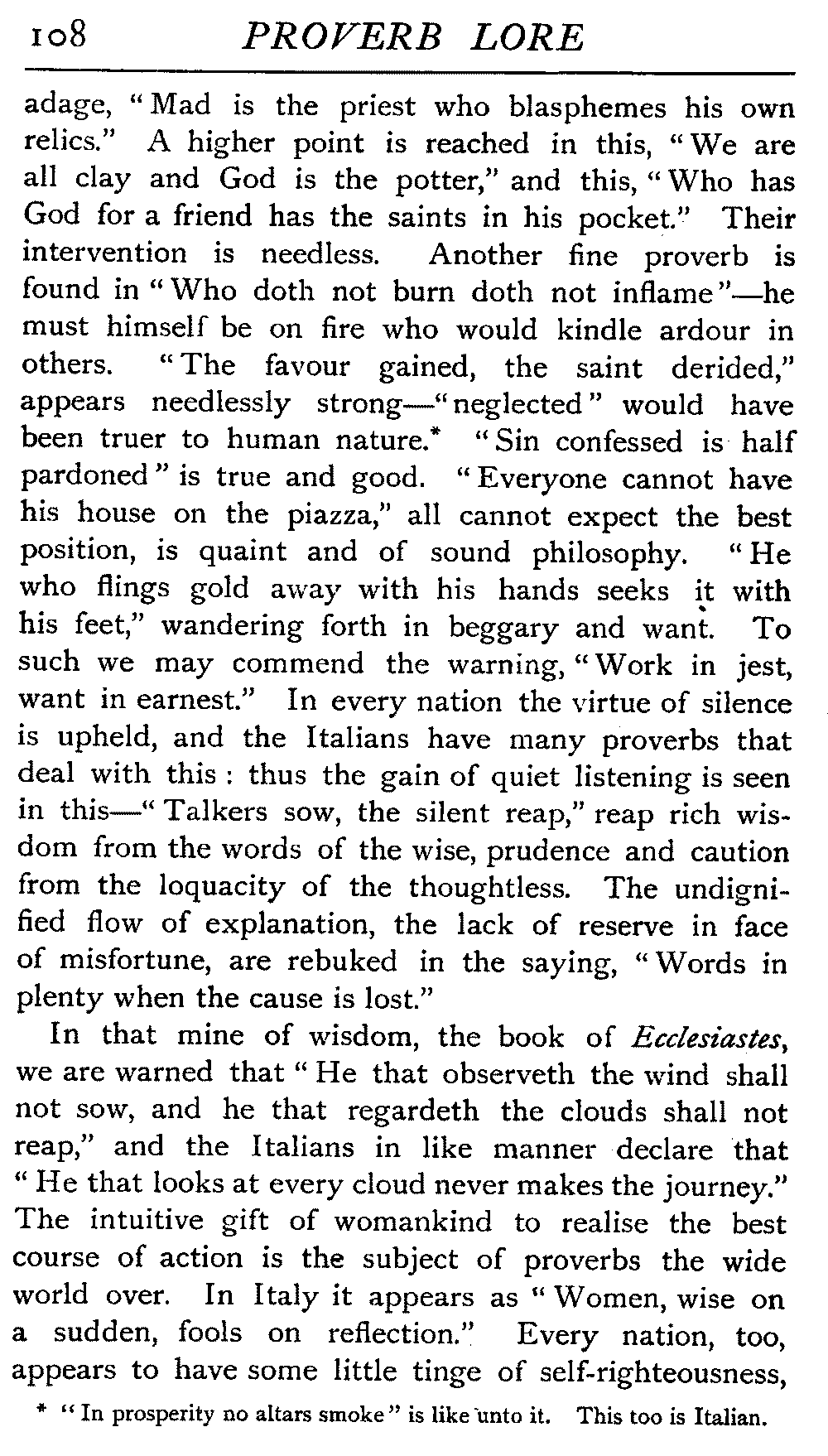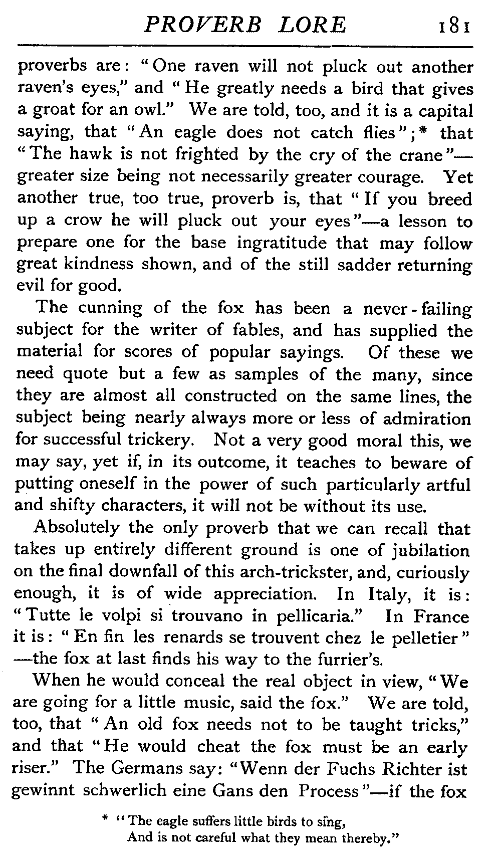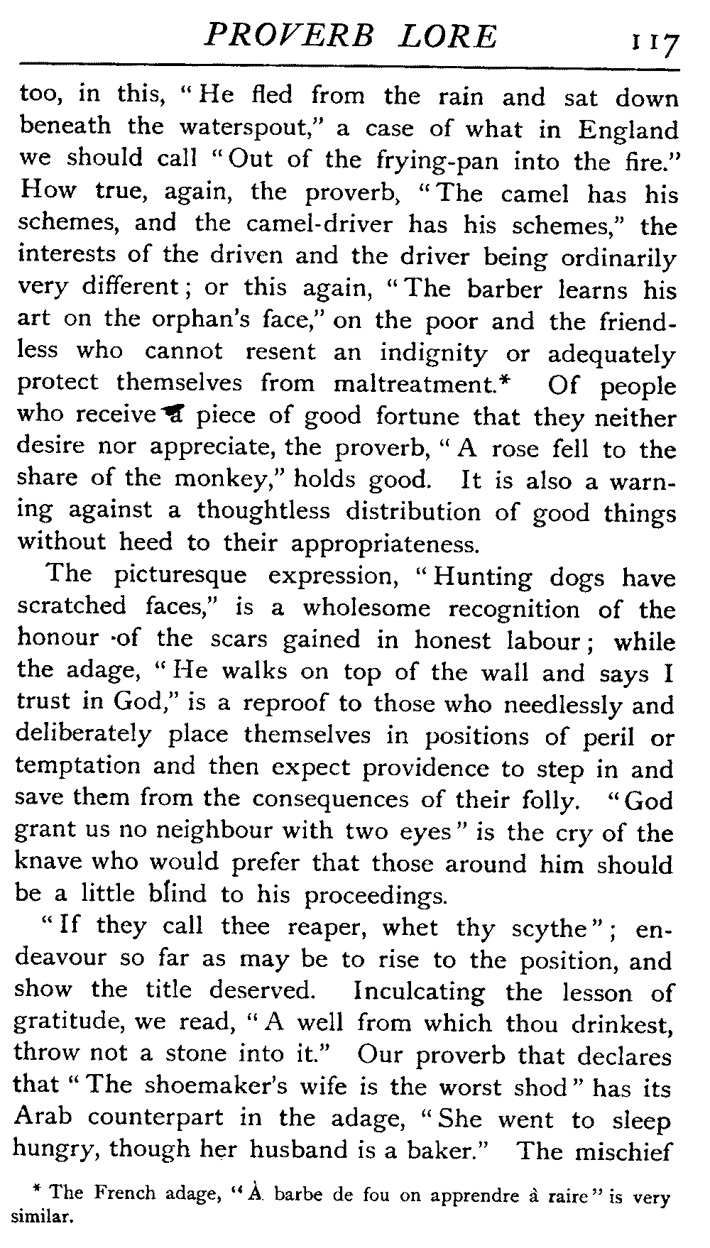| National Idiosyncrasies—The Seven Sages of Greece—Know Thyself—The Laconic "If"—Ancient Greek Proverbs—Roman Proverbs—The Proverbs of Scotland: Strong Vein of Humour in them—Spanish and Italian Proverbs—The Proverbs of France—The "Comédie des Proverbes"—The Proverbs of Spain: their Popularity and Abundance; Historic Interest: their Bibliography—Italian Proverbs: their Characteristics—The Proverbs of Germany—Chinese Adages: their Excellence—Japanese Proverbs: their Poetry and Beauty—Arab Sayings: their Servility: their Humour—Eastern Delight in Stories—African Sayings: their pithy Wisdom—The Proverb-philosophy of the Talmud | 90 |