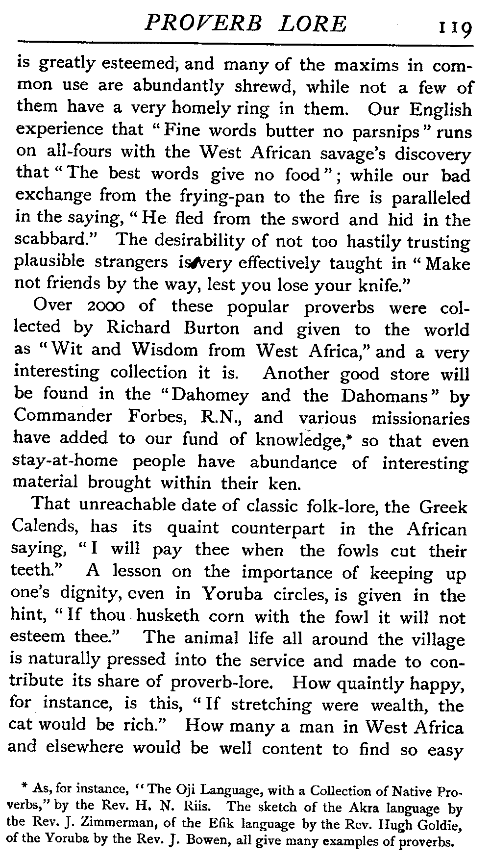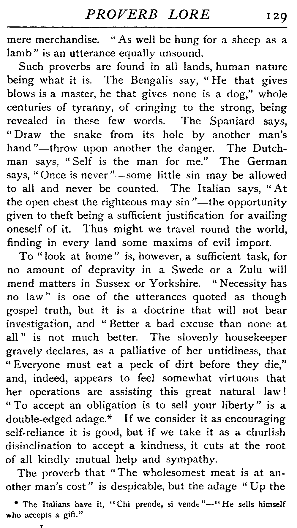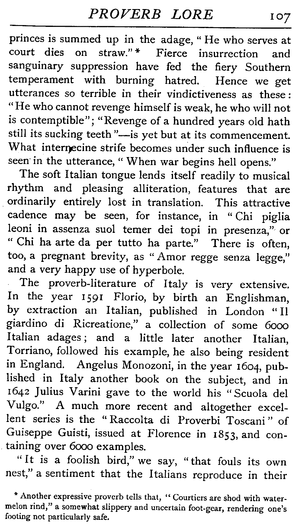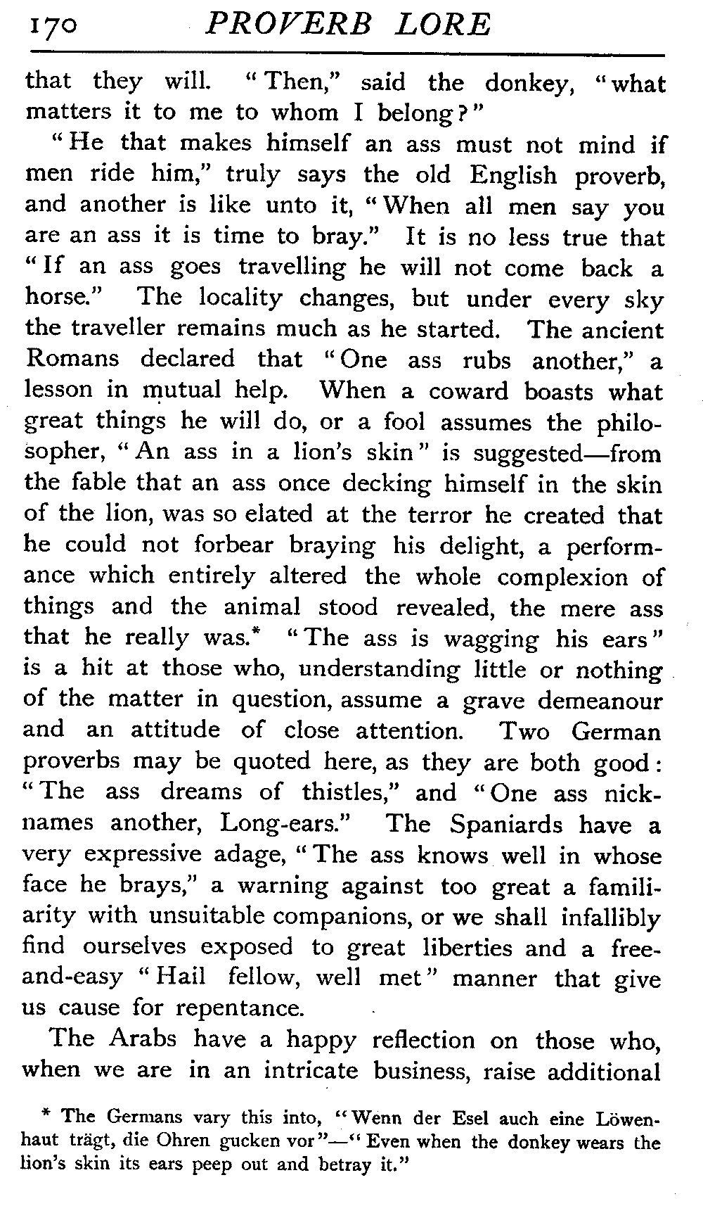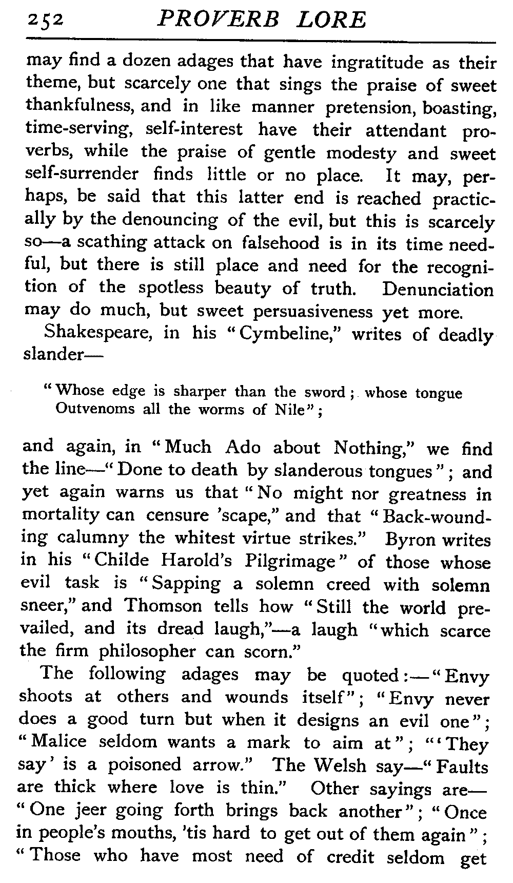 | National Idiosyncrasies—The Seven Sages of Greece—Know Thyself—The Laconic "If"—Ancient Greek Proverbs—Roman Proverbs—The Proverbs of Scotland: Strong Vein of Humour in them—Spanish and Italian Proverbs—The Proverbs of France—The "Comédie des Proverbes"—The Proverbs of Spain: their Popularity and Abundance; Historic Interest: their Bibliography—Italian Proverbs: their Characteristics—The Proverbs of Germany—Chinese Adages: their Excellence—Japanese Proverbs: their Poetry and Beauty—Arab Sayings: their Servility: their Humour—Eastern Delight in Stories—African Sayings: their pithy Wisdom—The Proverb-philosophy of the Talmud | 90 |