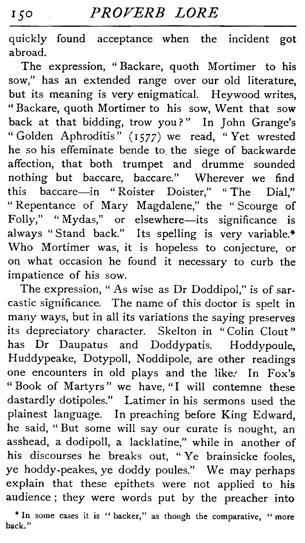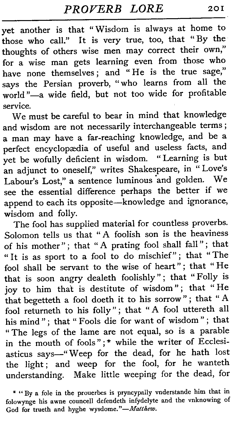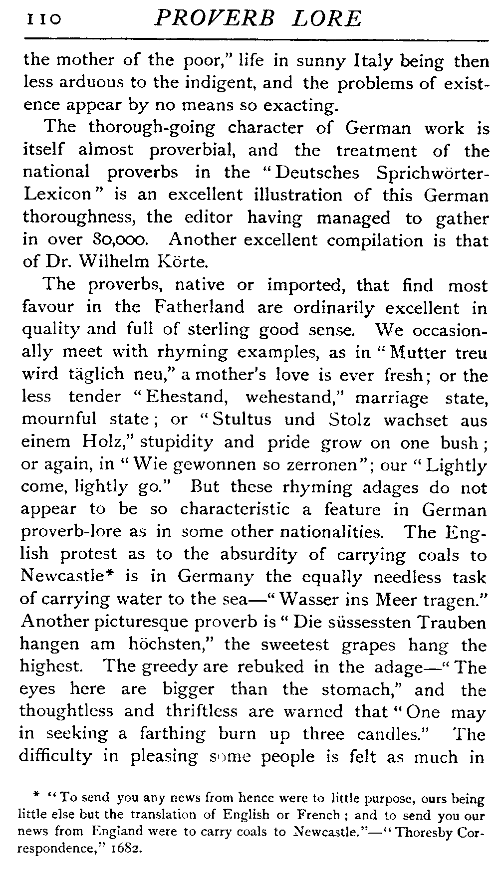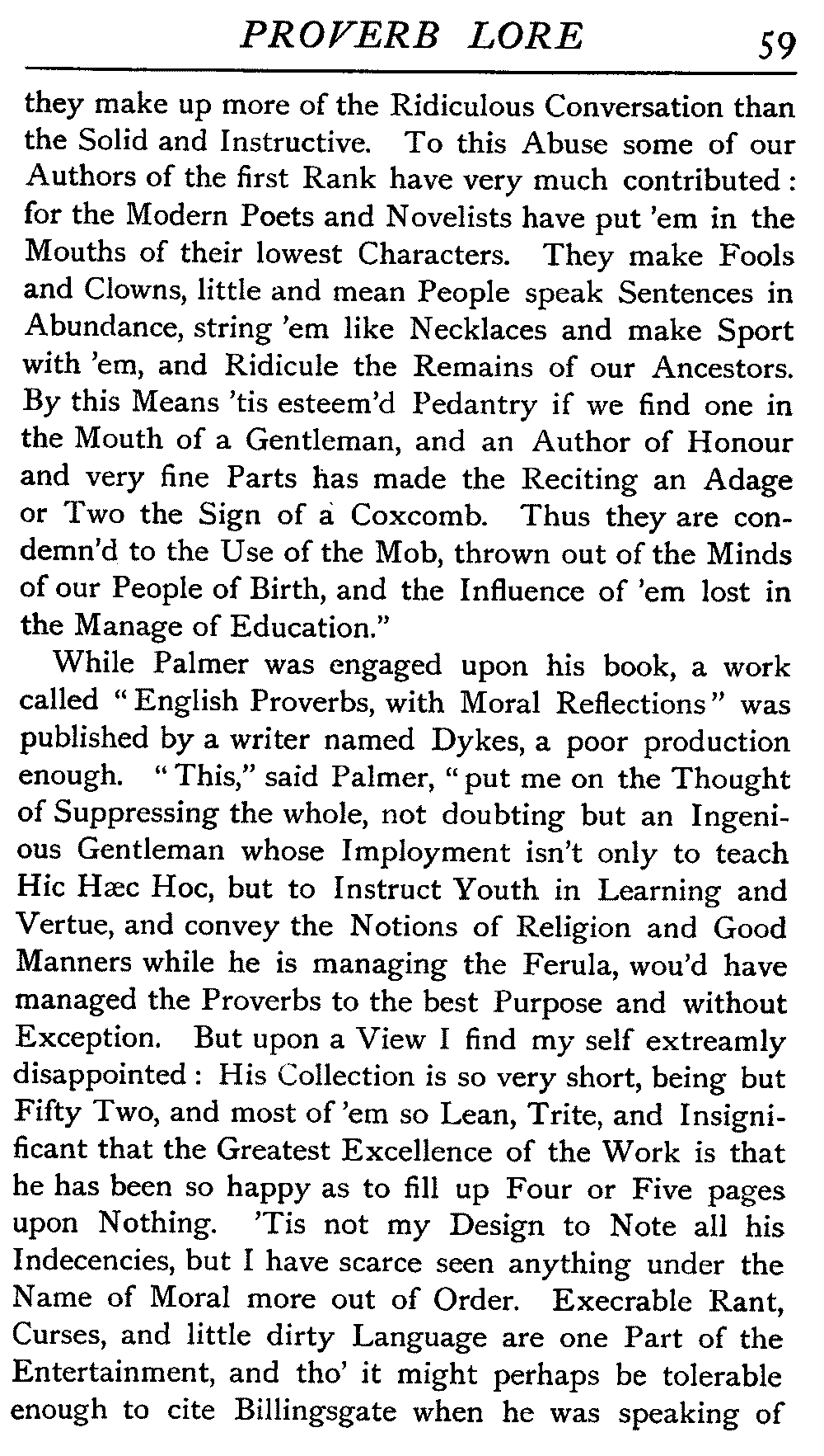 | Ancient Collections of Proverbs—The Proverbs of Solomon—Ecclesiasticus—The Work of D'Anvers on Solomon's Proverbs—The Collections of De Worde, Trevisis, and Lydgate—The "Adagia" of Erasmus—Tavernar's "Garden of Wisdom"—Heywood's Collection of Proverbs—Camden's "Remaines"—Davies, the "Scourge of Folly"—The "Apophthegms" of Lord Bacon—The "Outlandish Proverbs" of G. H.—Herbert's "Jacula Prudentum"—The Work of Howell and Cotgrave—The "Gnomologia" of Fuller—The Difficulties of Proverb-classification, by Country, by Leading Word, by Subject, etc.—Ray's "Collection of English Proverbs"—The "Paræmiologia" of Walker—Palmer on Proverbs—The Sayings of "Poor Richard" | 26 |