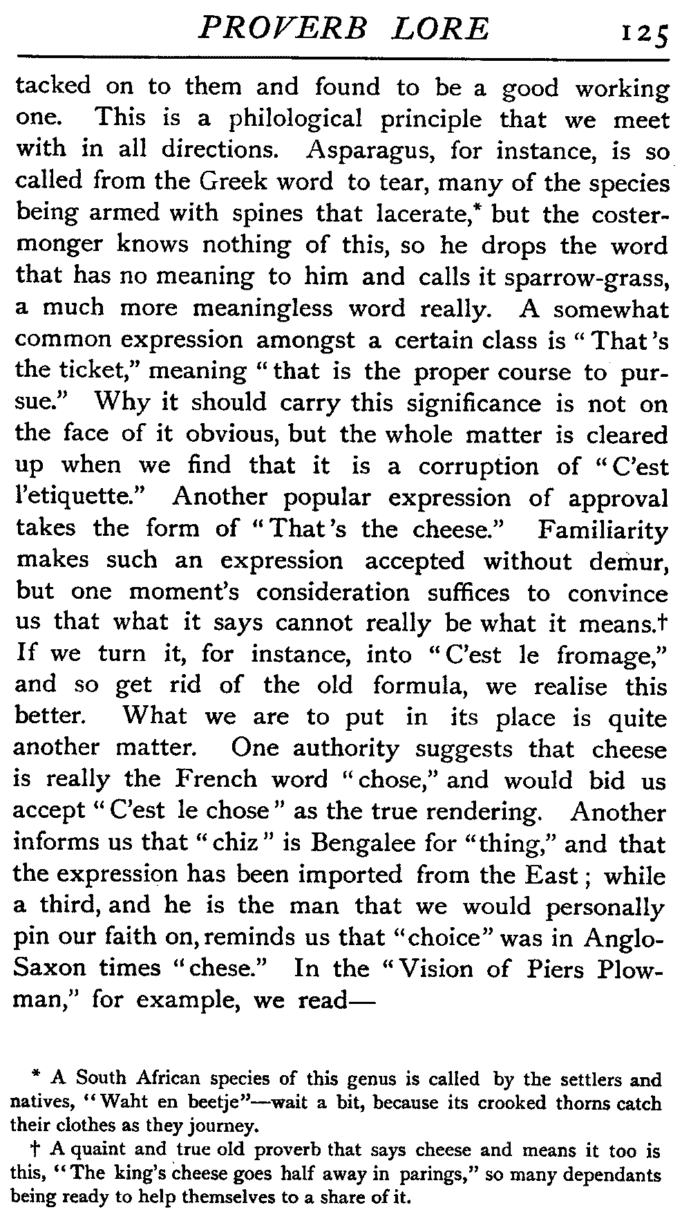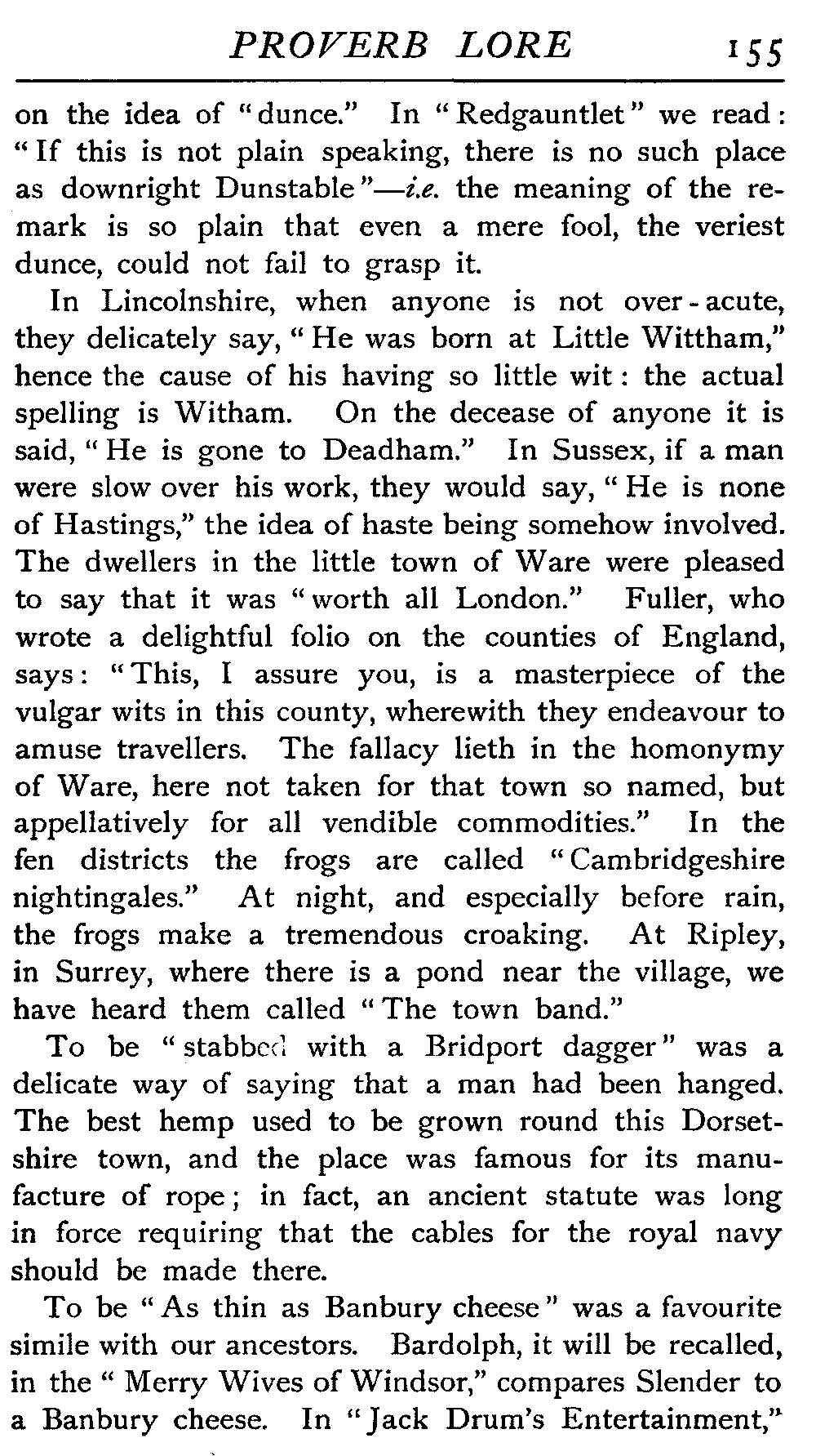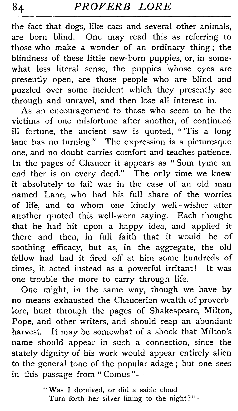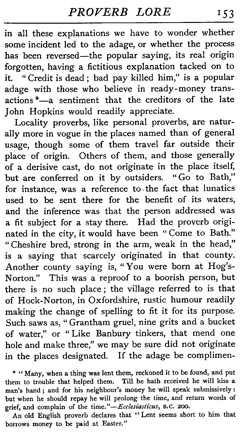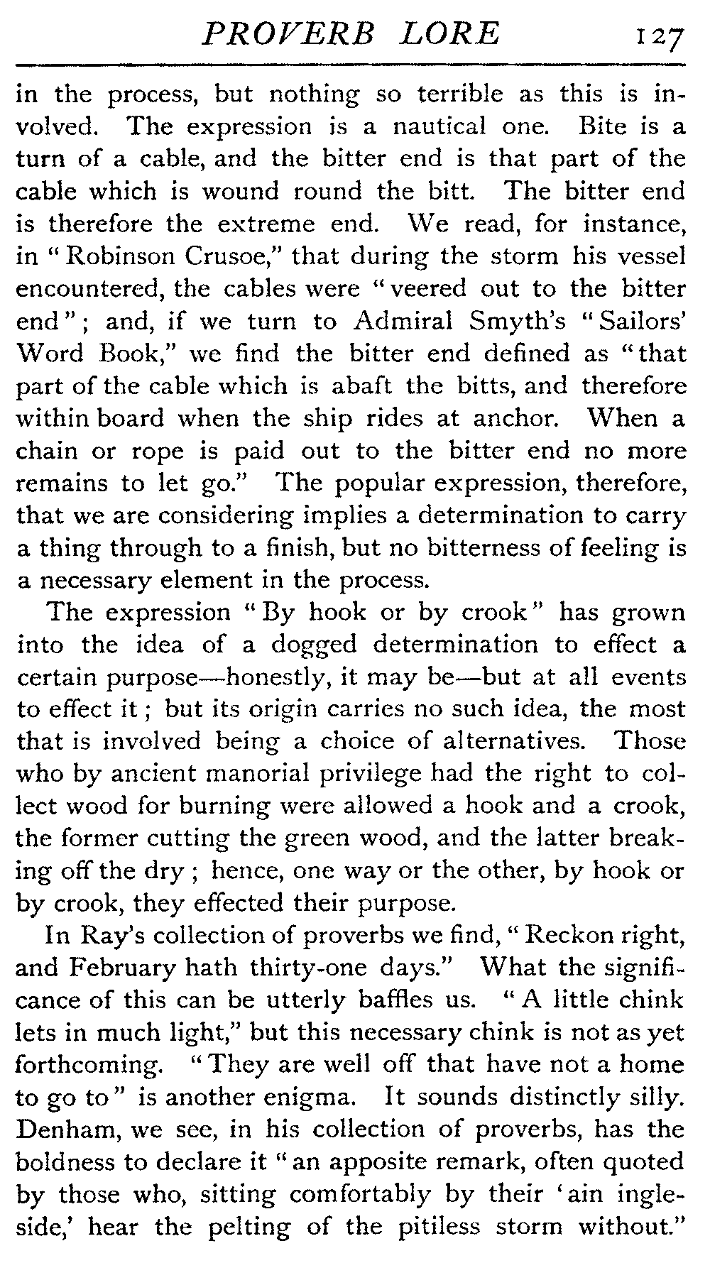 | Proverbs that are misunderstood—The Cheese—Raining Cats and Dogs—Cattle-harrying—The Bitter End—By Hook or Crook—Proverbs of Evil Teaching—Necessity has no Law—The Peck of Dirt—Howl with the Wolves—Sarcasm in Proverbs—The Fool—Selfishness—The Praise of Truth—The Value of Time—Death—The Conduct of Life—Occupations that supply Proverbs—The Barber, Tailor, Cobbler, Physician, Lawyer, and others—The Cowl and the Monk—The Long Bow—The Meditative Angler—Sayings associated with particular Individuals—Hobson and his Choice—Plowden's Law—Mortimer's Sow—The Wisdom of Doddipol—The Fear of Mrs Grundy's Opinion—Locality Proverbs—Rustic Humour—Local Products—Tenterden Steeple | 124 |