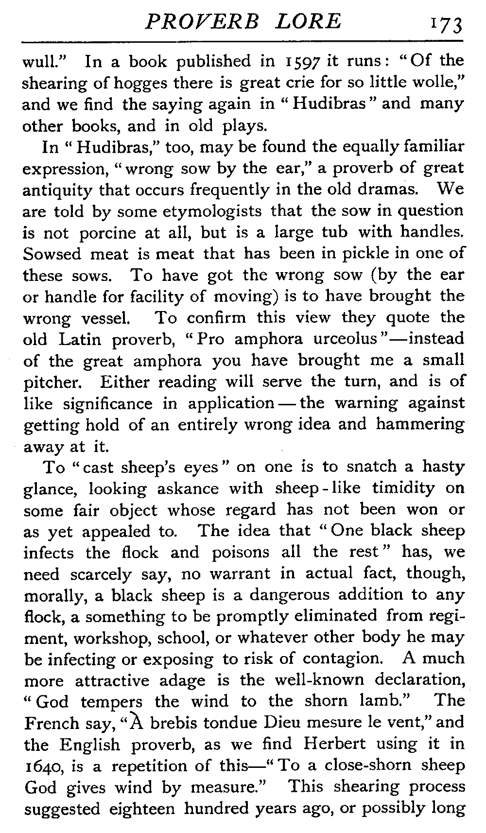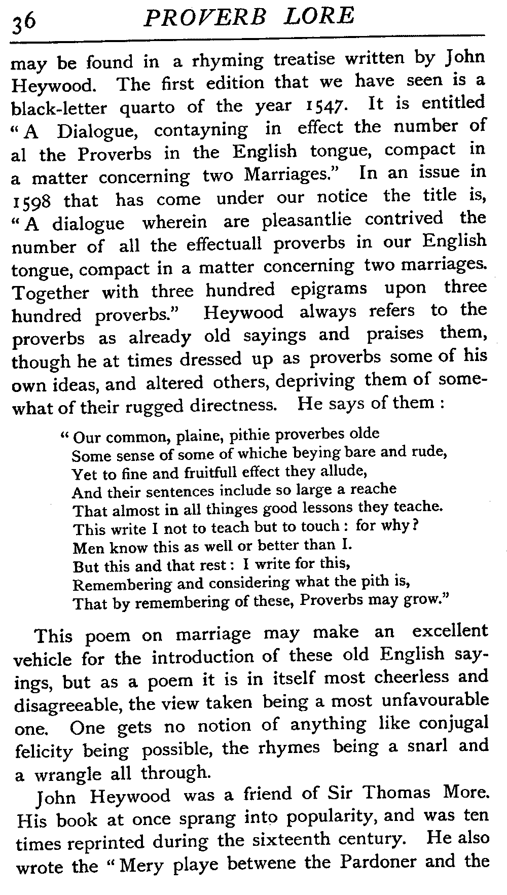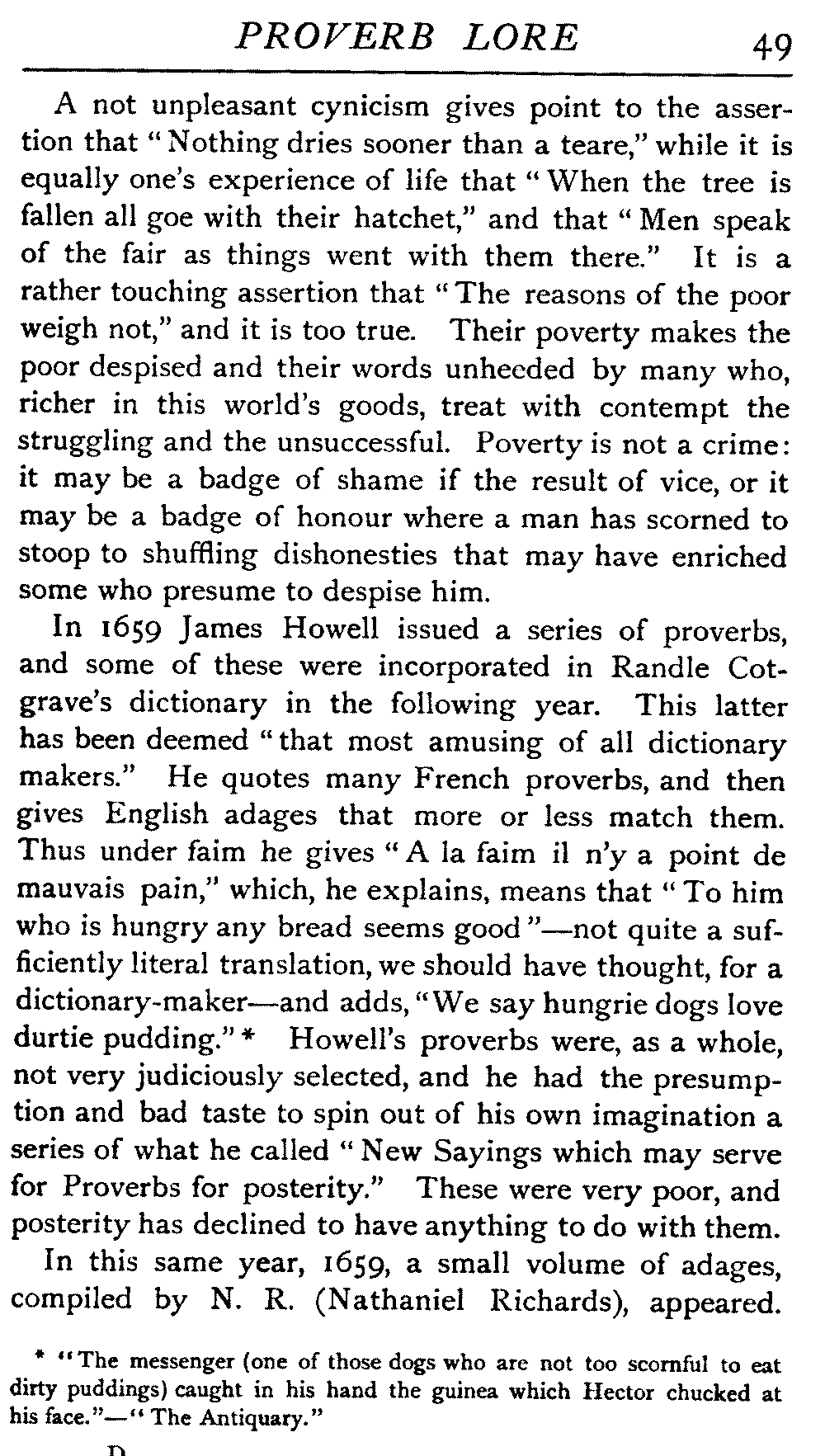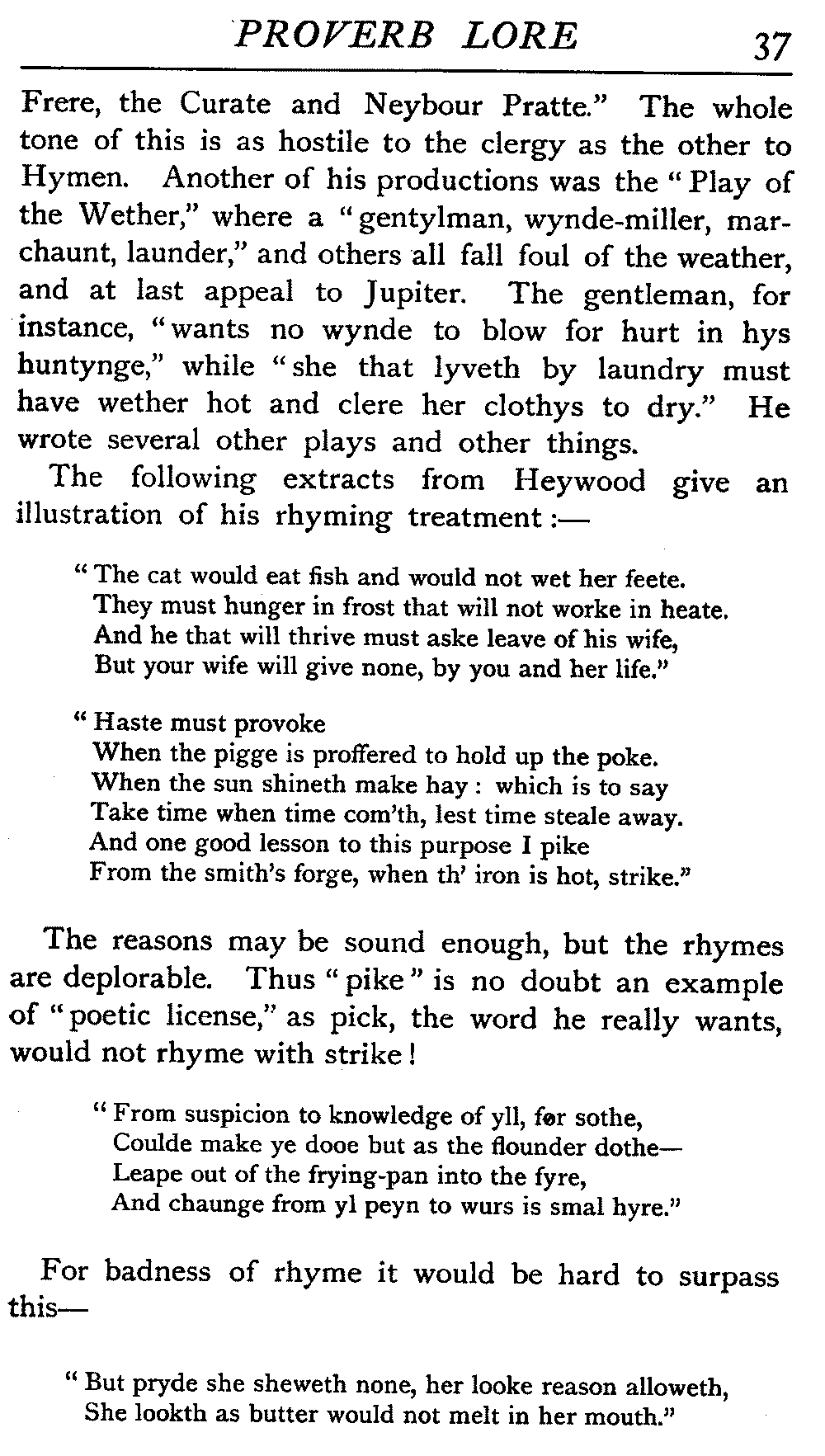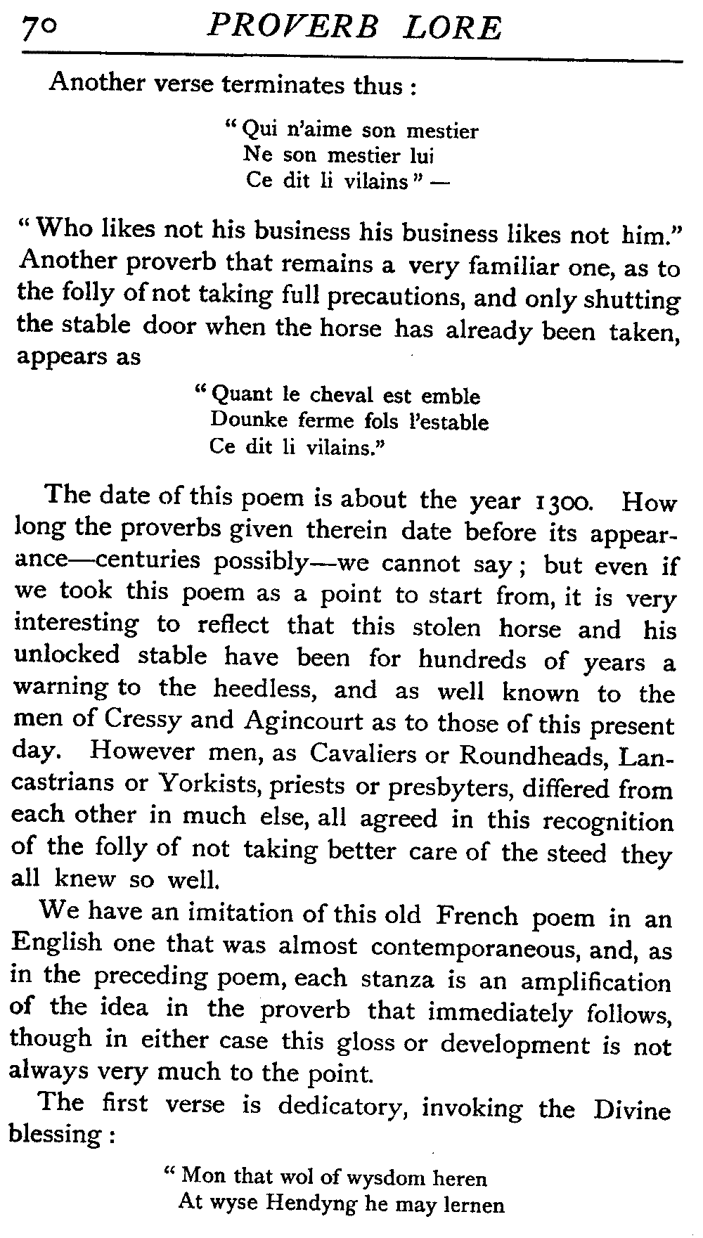 | "The Book of Merry Riddles"—Introduction of Proverbs in our Literature—A Surfeit of Proverbs—"The two Angrie Women of Abington"—Fuller on the Misuse of Proverbs—The Sayings of Hendyng—Proverbs in Works of Chaucer, Lydgate, Spenser, Dryden, Shakespeare, and other Writers—The "Imitation of Christ"—Glitter is not necessarily Gold—The Cup and the Lip—Comparisons odious—The Rolling-Stone—The "Vision of Piers Plowman"—Guelph and Ghibelline—Dwellers in Glass Houses—A Spade is a Spade—Chalk and Cheese—Silence gives Consent—A Nine Days' Wonder—The little Pot soon Hot—Weakest to the Wall—Proverb-Hunting through our old Literature | 65 |