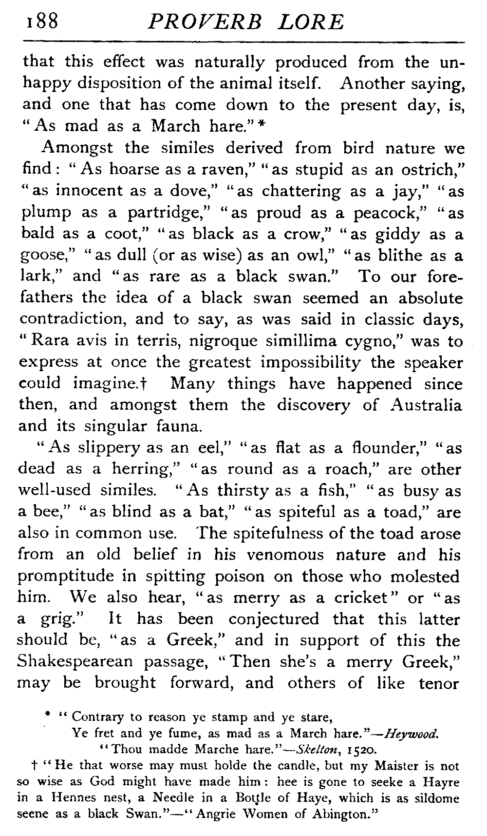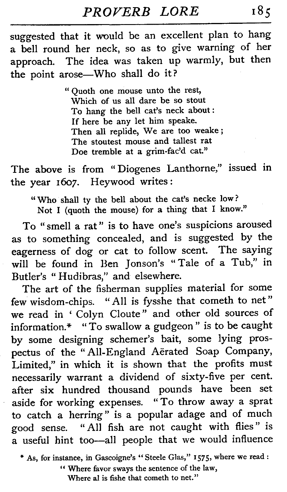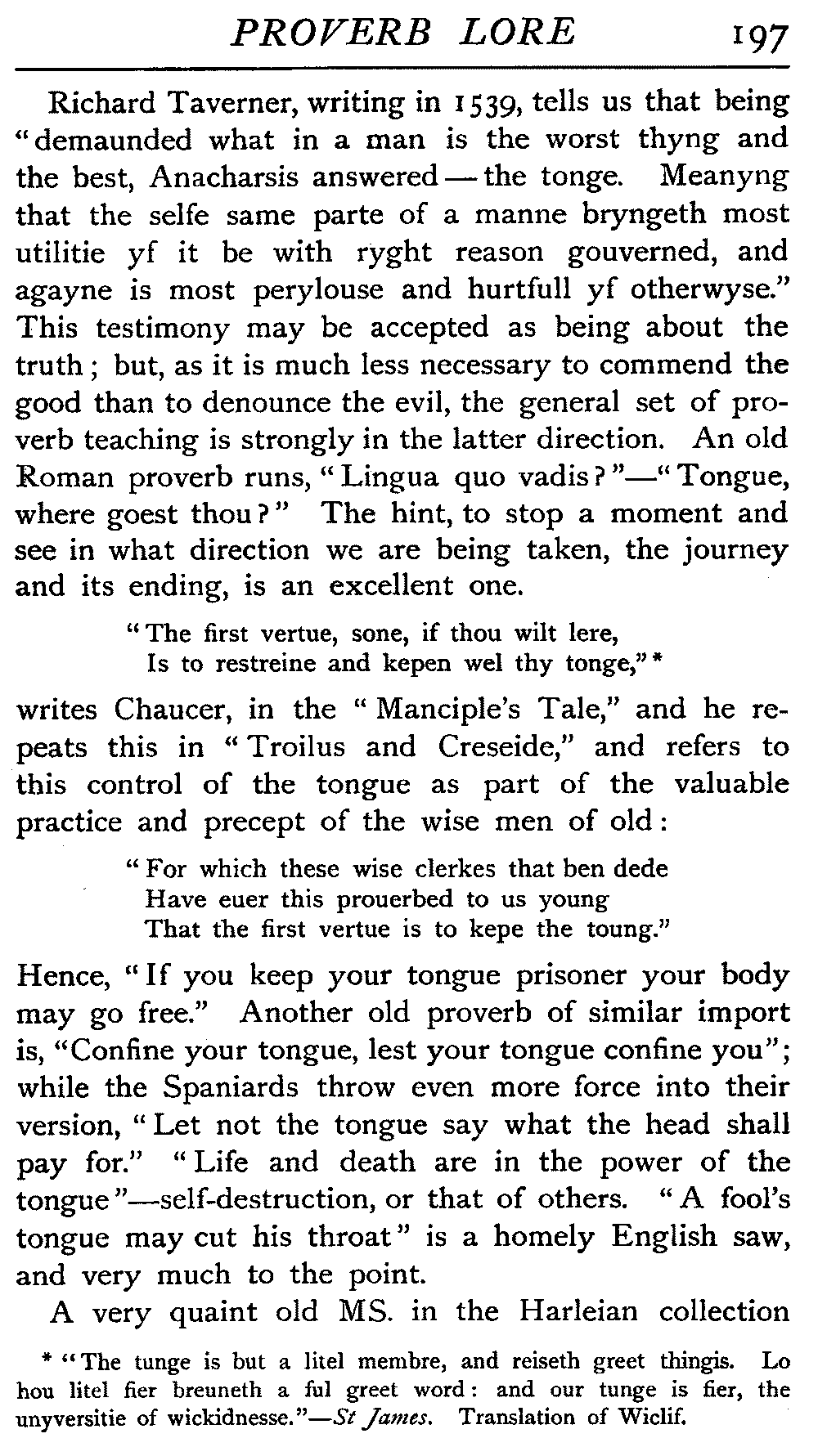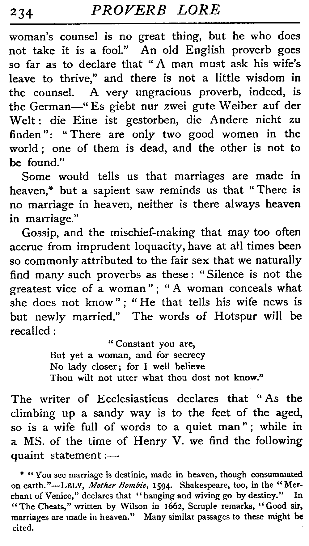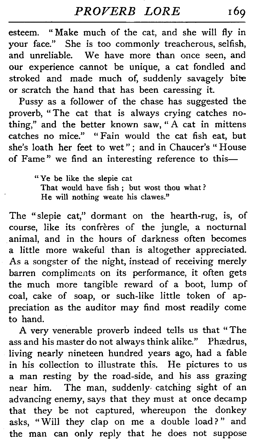 | "The Book of Merry Riddles"—Introduction of Proverbs in our Literature—A Surfeit of Proverbs—"The two Angrie Women of Abington"—Fuller on the Misuse of Proverbs—The Sayings of Hendyng—Proverbs in Works of Chaucer, Lydgate, Spenser, Dryden, Shakespeare, and other Writers—The "Imitation of Christ"—Glitter is not necessarily Gold—The Cup and the Lip—Comparisons odious—The Rolling-Stone—The "Vision of Piers Plowman"—Guelph and Ghibelline—Dwellers in Glass Houses—A Spade is a Spade—Chalk and Cheese—Silence gives Consent—A Nine Days' Wonder—The little Pot soon Hot—Weakest to the Wall—Proverb-Hunting through our old Literature | 65 |