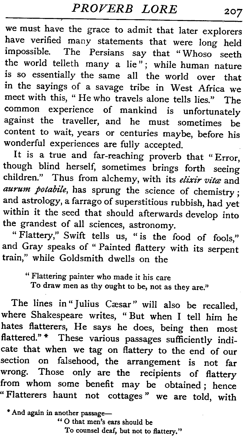 we are told by Shakespeare, who doubtless knew this proverb, and transmuted it by his genius into fine gold—