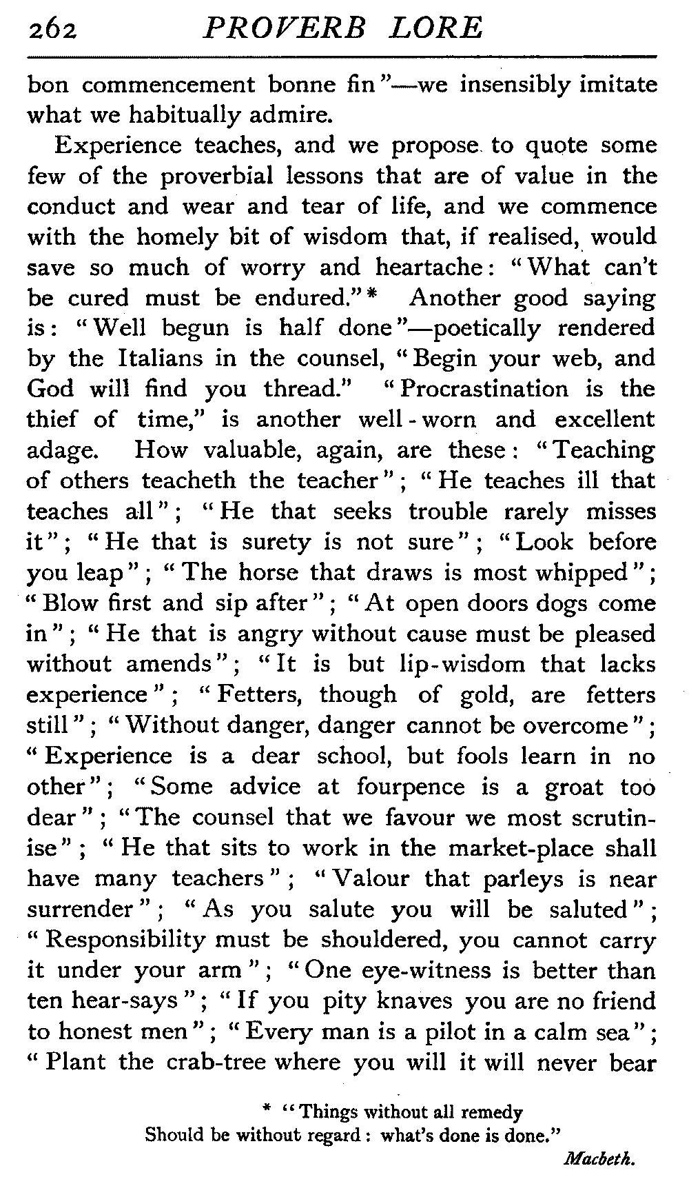 The word proverb is Greek in its inception, and means, literally, a wayside saying. Adage, a fairly equivalent word, is also of Greek birth. The reference in "Macbeth" will at once be recalled—