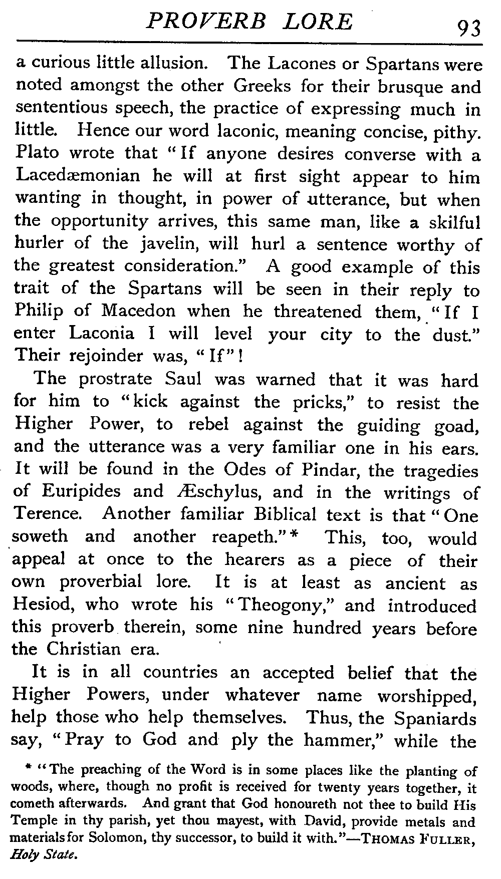 The Divine Teacher did not scruple to employ this form of speech. In the synagogue of Nazareth He reminds them of the popular proverb, "Physician, heal thyself," and at the Well of Sychar He declares that saying true, "One soweth, another reapeth."