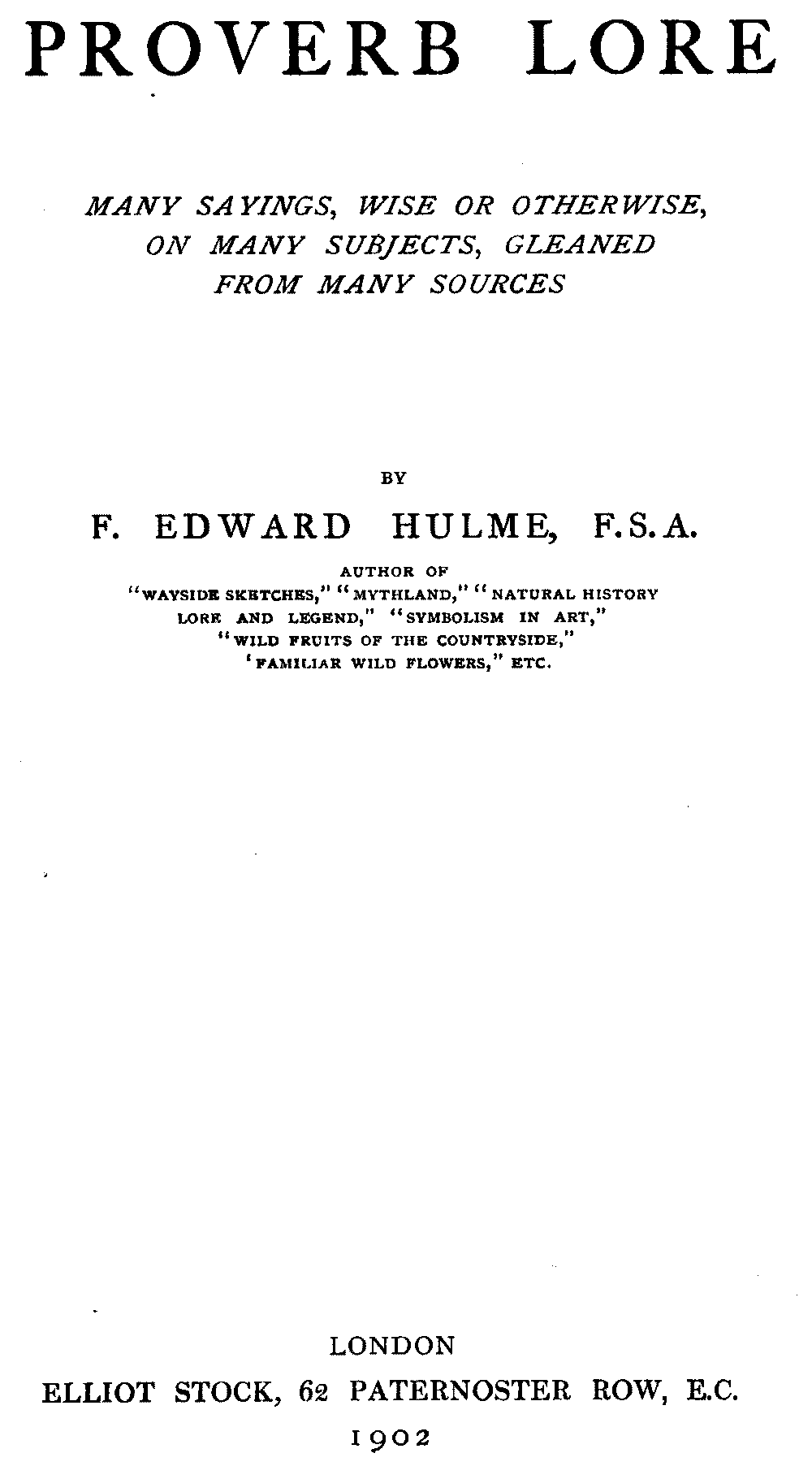 The Project Gutenberg EBook of Proverb Lore, by F. Edward Hulme