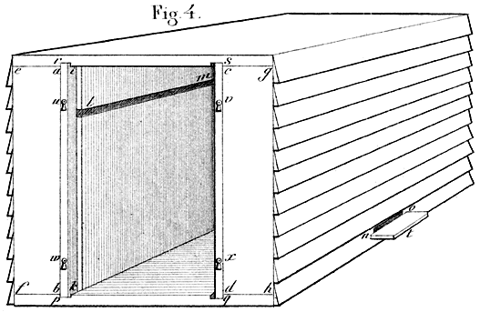 Bij het gebruik van Dzierzon’sche woningen kan de stal gemist worden, bl. 105. Inrigting der bijenstallen, bl. 106. Het plaatsen van den stal, bl. 109.