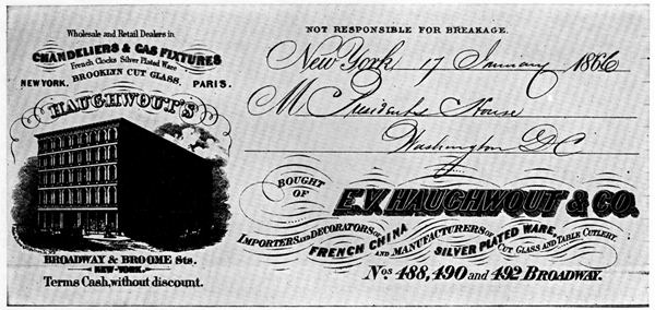 Figure 4.—Letterhead of E. V. Haughwout & Co., from whom the purple set was ordered. (Smithsonian photo 60001-A.)