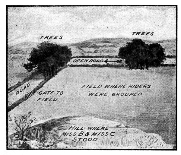 Miss B. remarked: "That must be Mr. X." (the only gentleman in the district who usually hunted on a white horse), "how late he is." And she and Miss C. concluded that Mr. X. was making his way down the road to where a gate beyond the trees would take him into the field where the rest of the hunters were gathered. But the minutes passed, and he never came to join the other riders, though Miss B. and her friend must have seen him if he had done so. However, they supposed that he was perhaps waiting in the road after all, hidden by the trees, and so thought no more of the matter.