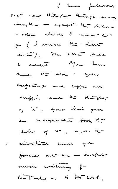 "I passed an evening with your Hearn manuscript and the supplementary matter by my granddaughter, and found them both well done and of deep interest. Some of your passages are beautifully written and make me think that if you will give us more of the style which is so plainly at your command, you will gain, etc.... The publishers do not understand, as I do, that Hearn will in time be as much of a romantic personality and tradition as Poe now is. I strongly urged one publisher to buy those copyrights owned by three other firms on any terms and in the end bring out a definitive edition of his complete works."
