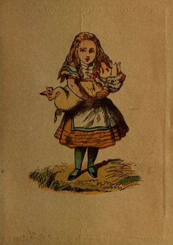 You don’t see why I call them ‘Surprises’? Well, take the Case in your left-hand, and regard it attentively. You see Alice nursing the Duchess’s Baby? (An entirely new combination, by the way: it doesn’t occur in the book.) Now, with your right thumb and forefinger, lay hold of the little book, and[Pg 6] suddenly pull it out. The Baby has turned into a Pig! If that doesn’t surprise you, why, I suppose you wouldn’t be surprised if your own Mother-in-law suddenly turned into a Gyroscope!